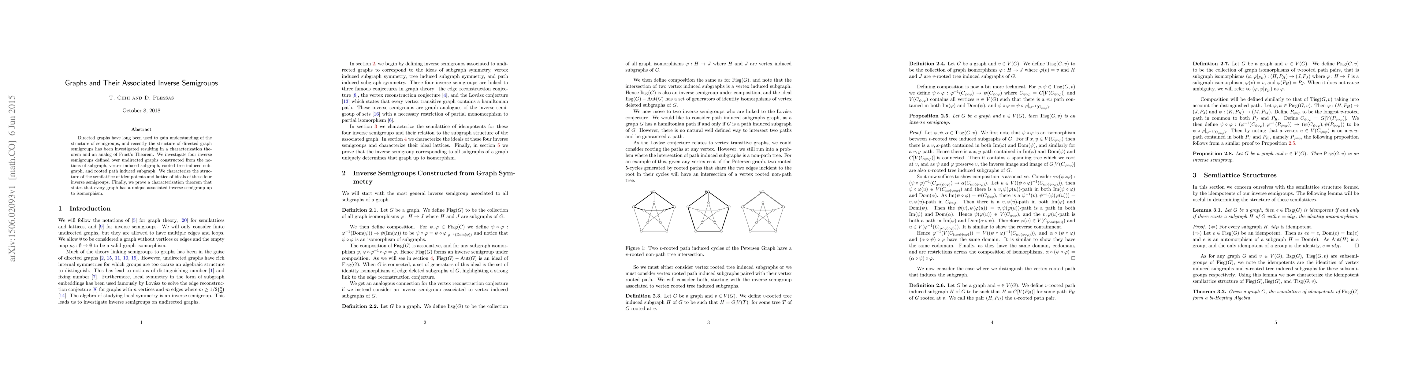 This paper investigates four inverse semigroups derived from undirected graphs, characterizing their semilattices of idempotents and lattices of ideals. The study concludes with a characterization theorem proving that each graph has a unique associated inverse semigroup up to isomorphism.