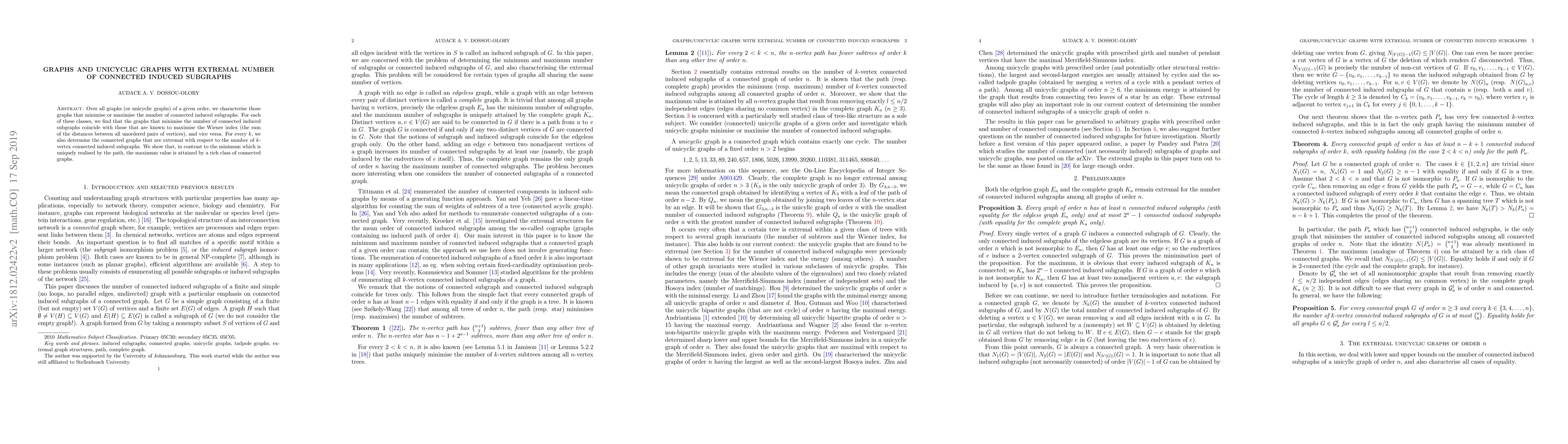 This paper identifies graphs and unicyclic graphs that either minimize or maximize the number of connected induced subgraphs, showing a connection with the Wiener index. It also determines extremal connected graphs for specific $k$-vertex connected induced subgraphs, revealing that while the minimum is uniquely realized by paths, the maximum is achieved by diverse graph structures.