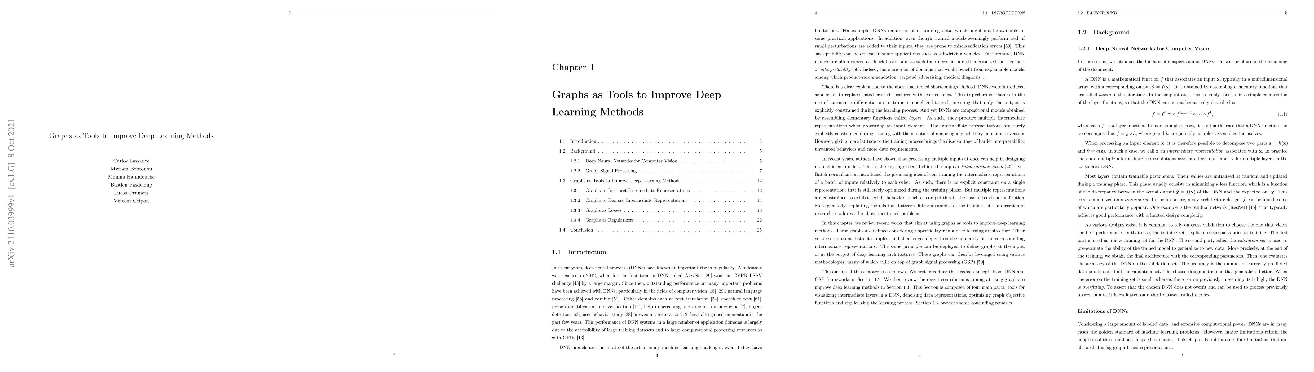 In recent years, deep neural networks (DNNs) have known an important rise in popularity. However, although they are state-of-the-art in many machine learning challenges, they still suffer from several limitations. For example, DNNs require a lot of training data, which might not be available in some practical applications. In addition, when small perturbations are added to the inputs, DNNs are prone to misclassification errors. DNNs are also viewed as black-boxes and as such their decisions are often criticized for their lack of interpretability. In this chapter, we review recent works that aim at using graphs as tools to improve deep learning methods. These graphs are defined considering a specific layer in a deep learning architecture. Their vertices represent distinct samples, and their edges depend on the similarity of the corresponding intermediate representations. These graphs can then be leveraged using various methodologies, many of which built on top of graph signal processing. This chapter is composed of four main parts: tools for visualizing intermediate layers in a DNN, denoising data representations, optimizing graph objective functions and regularizing the learning process.