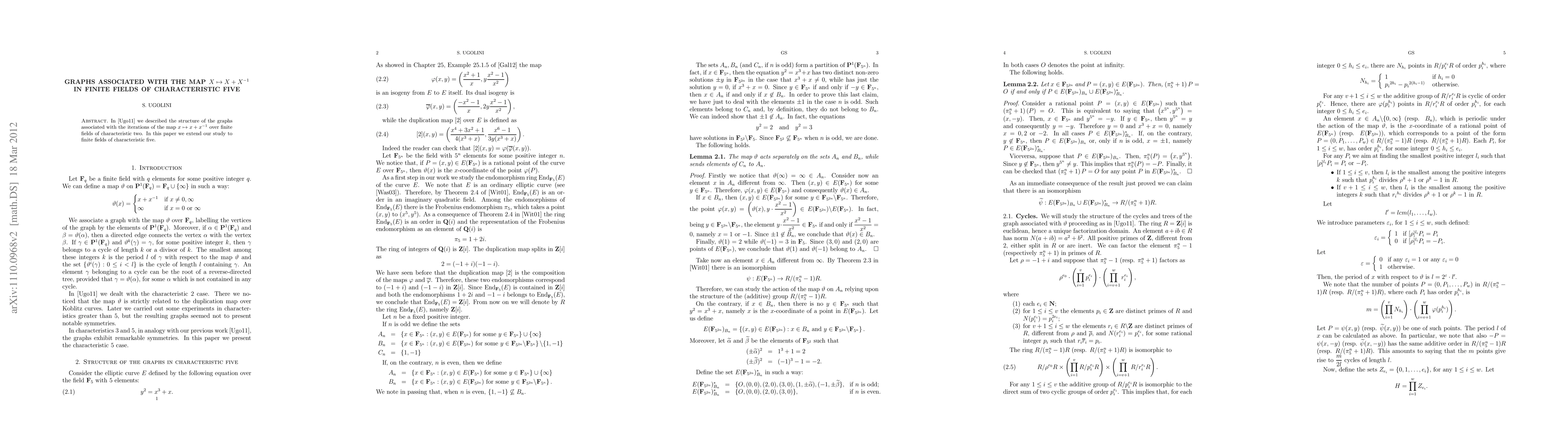 In this paper we study the structure of the graphs associated with the iterations of the map $x \mapsto x+x^{-1}$ over finite fields of characteristic five.