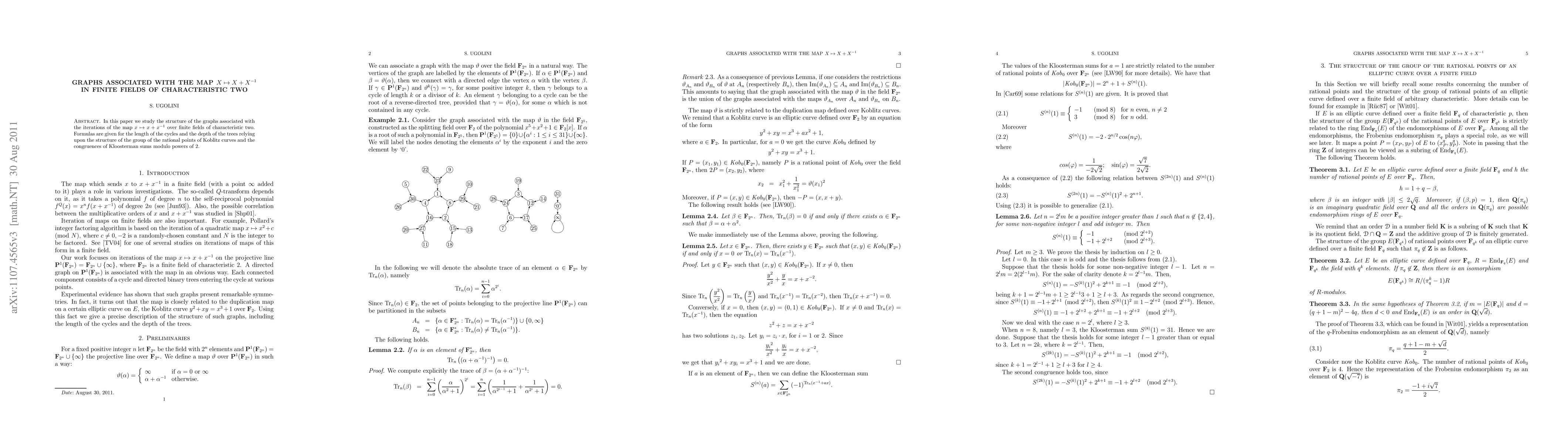 Researchers studied the structure of graphs associated with a map over finite fields of characteristic two, revealing formulas for cycle lengths and tree depths based on Koblitz curves and Kloosterman sums.