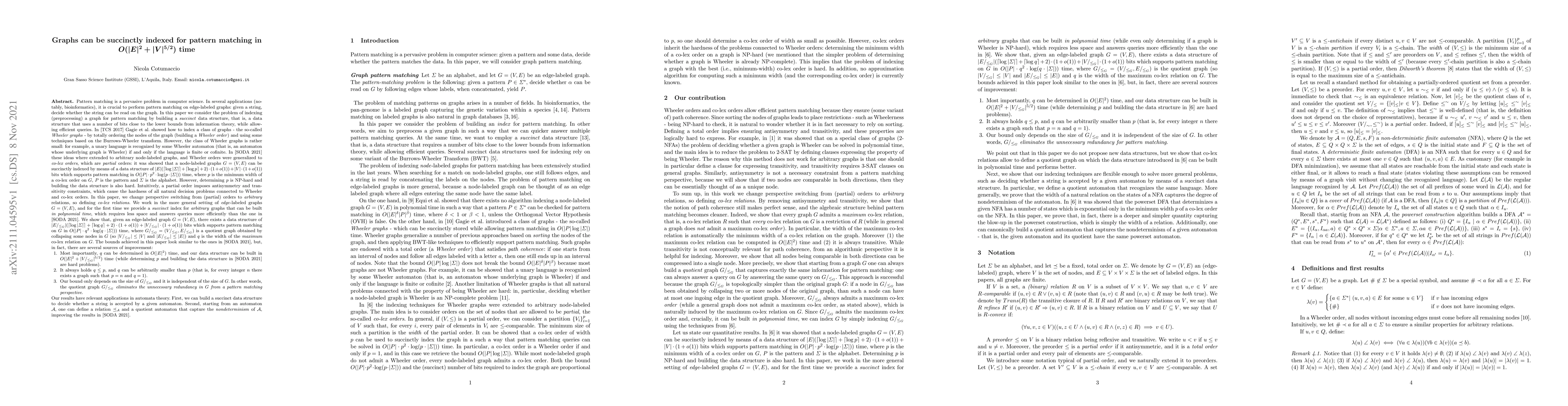 For the first time we provide a succinct pattern matching index for arbitrary graphs that can be built in polynomial time, which requires less space and answers queries more efficiently than the one in [SODA 2021]. We show that, given an edge-labeled graph $ G = (V, E) $, there exists a data structures of $|E /_{\le_G}|(\lceil \log|\Sigma|\rceil + \lceil\log q\rceil + 2)\cdot (1+o(1)) + |V /_{\le_G}|\cdot (1+o(1))$ bits which can be built in $ O(|E|^2 + |V /_{\le_G}|^{5 / 2}) $ time and supports pattern matching on $ G $ in $O(|P| \cdot q^2 \cdot \log(q\cdot |\Sigma|))$ time, where $ G /_{\le_G} = (V /_{\le_G}, E /_{\le_G}) $ is a quotient graph obtained by collapsing some nodes in $ G $ (so $ |V /_{\le_G}| \le |V| $ and $ |E /_{\le_G}| \le |E| $) and $ q $ is the width of the maximum co-lex relation on $ G $. Our results have relevant applications in automata theory. First, we can build a succinct data structure to decide whether a string is accepted by a given automaton. Second, starting from an automaton $ \mathcal{A} $, one can define a relation $ \preceq_\mathcal{A} $ and a quotient automaton that capture the nondeterminism of $ \mathcal{A} $, improving the results in [SODA 2021].