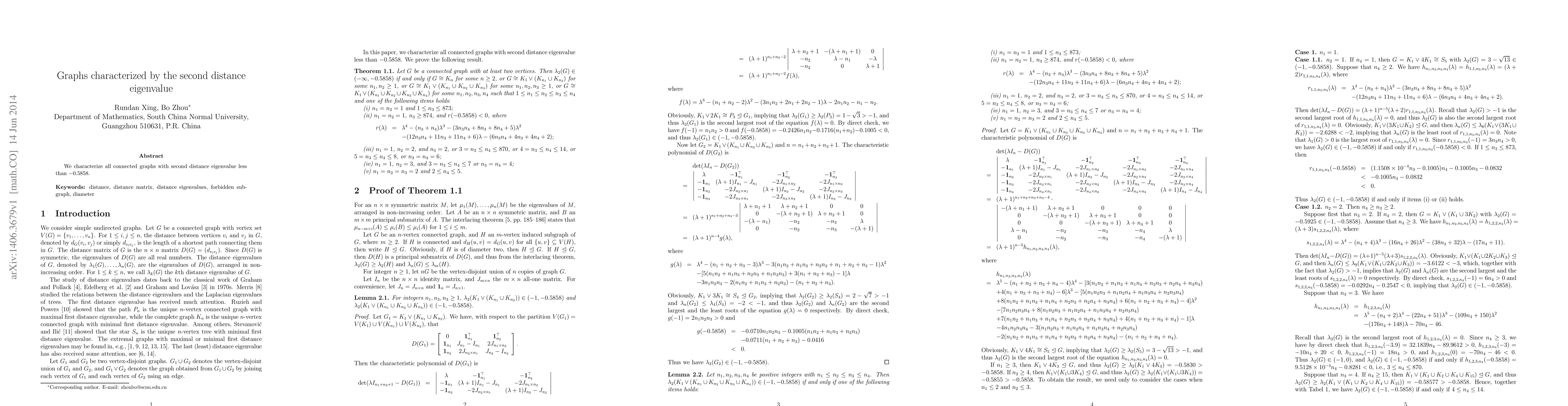 Summary: This paper identifies all connected graphs where the second eigenvalue in the distance matrix spectrum is less than $-0.5858$, providing a comprehensive characterization of such graphs.