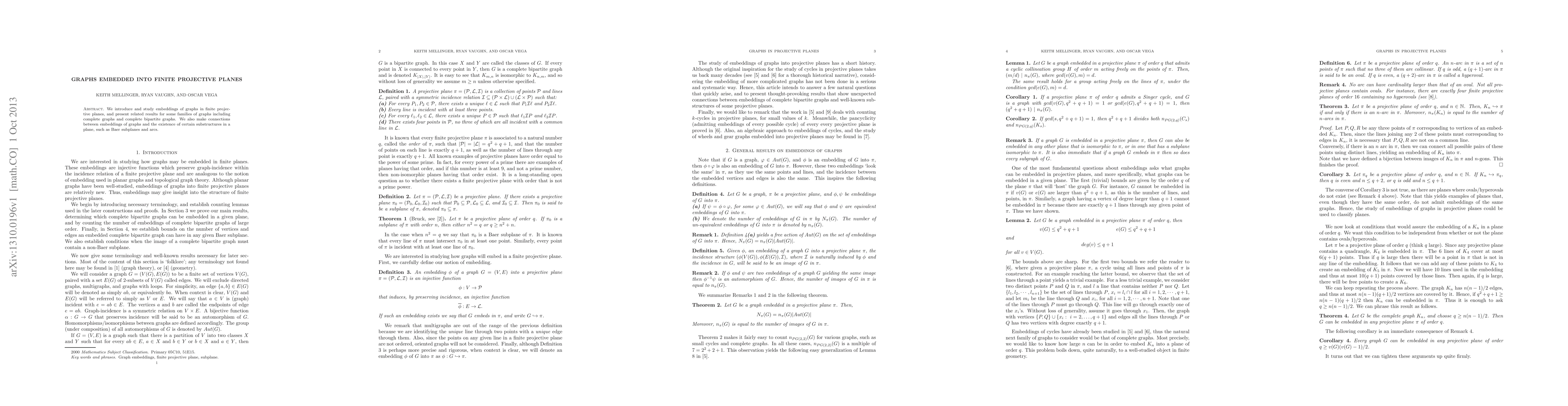 This paper explores the embedding of various graphs, such as complete and complete bipartite graphs, into finite projective planes, and investigates connections between these embeddings and the presence of substructures like Baer subplanes and arcs within the planes.