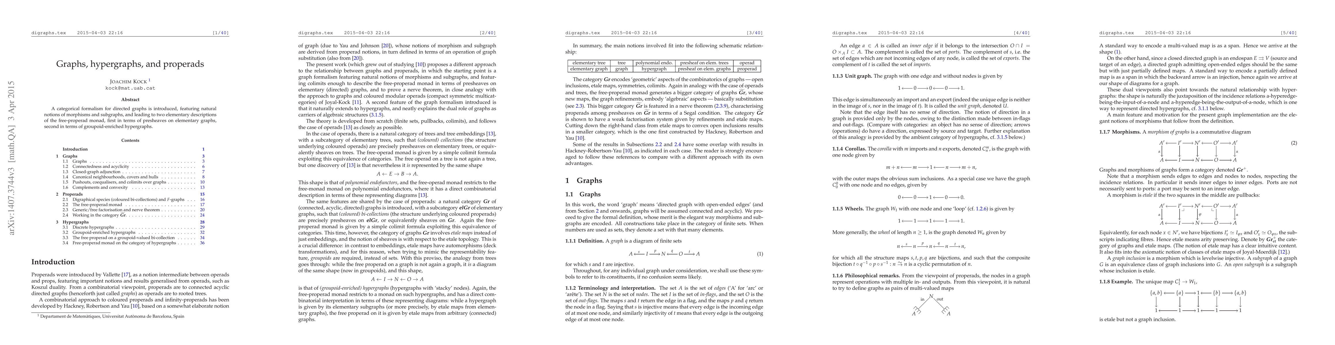 A categorical formalism for directed graphs is introduced, featuring natural notions of morphisms and subgraphs, and leading to two elementary descriptions of the free-properad monad, first in terms of presheaves on elementary graphs, second in terms of groupoid-enriched hypergraphs.