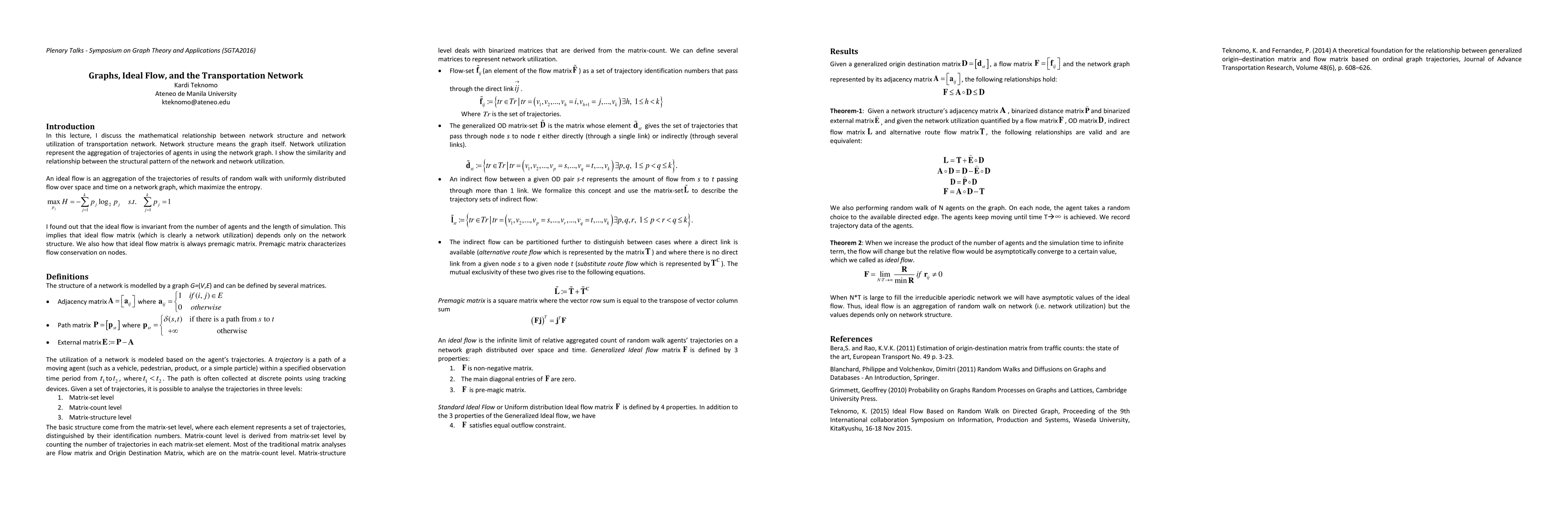 This lecture discusses the mathematical relationship between network structure and network utilization of transportation network. Network structure means the graph itself. Network utilization represent the aggregation of trajectories of agents in using the network graph. I show the similarity and relationship between the structural pattern of the network and network utilization.