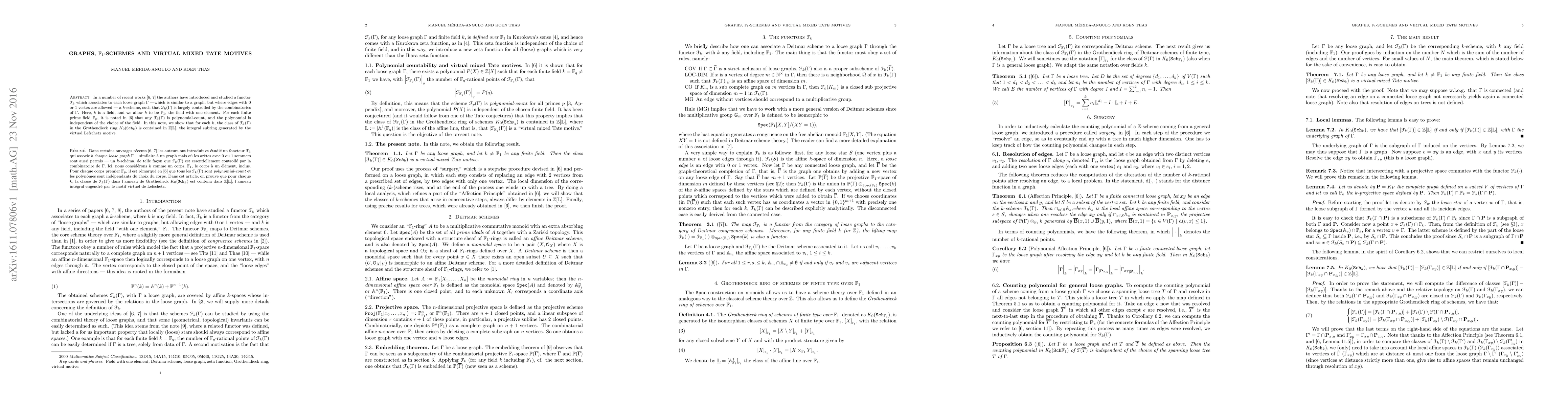 Researchers explore a connection between graphs, schemes, and virtual mixed Tate motives, showing that certain graph functions can be represented as multiples of the Lefschetz motive in the Grothendieck ring.