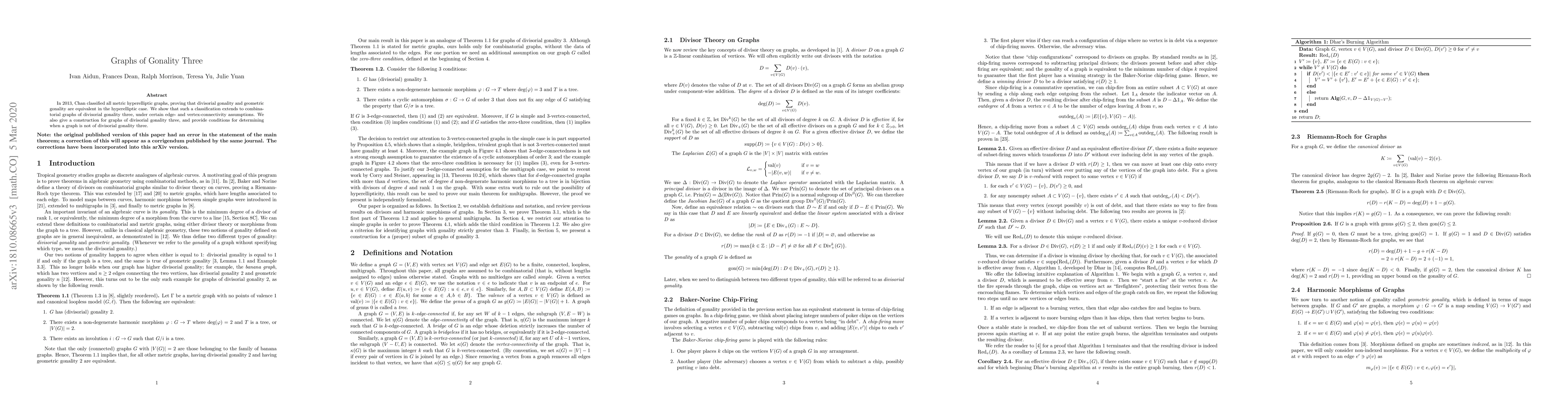 In 2013, Chan classified all metric hyperelliptic graphs, proving that divisorial gonality and geometric gonality are equivalent in the hyperelliptic case. We show that such a classification extends to combinatorial graphs of divisorial gonality three, under certain edge- and vertex-connectivity assumptions. We also give a construction for graphs of divisorial gonality three, and provide conditions for determining when a graph is not of divisorial gonality three.