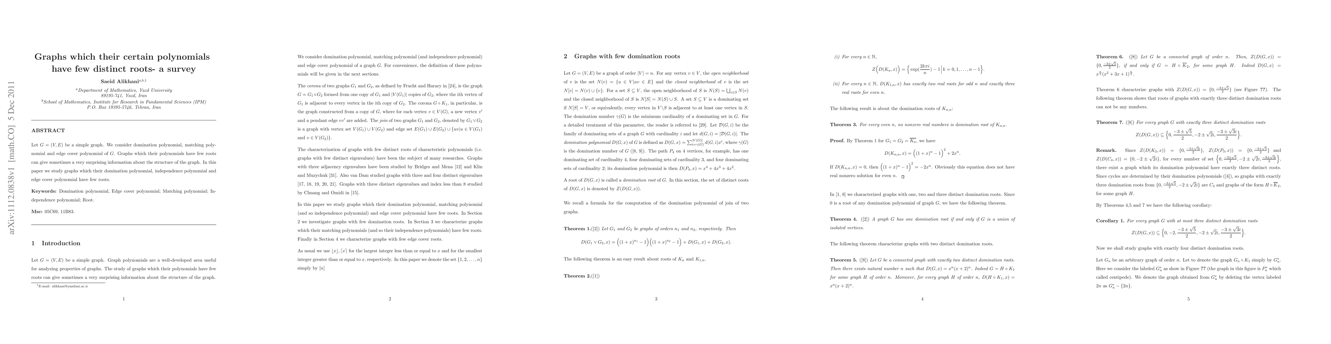 This paper surveys graphs whose domination polynomial, independence polynomial, and edge cover polynomial have few distinct roots, revealing unique insights into the structural properties of these graphs. The study highlights the surprising information that such polynomial characteristics can provide about the graph's structure.