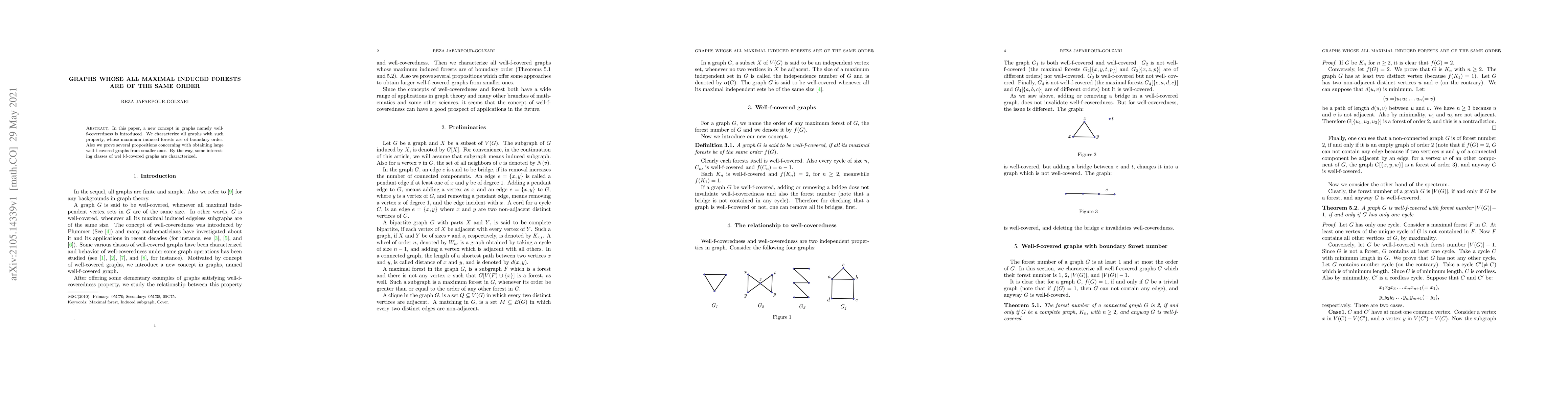 In this paper, a new concept in graphs namely well-f-coveredness is introduced. We characterize all graphs with such property, whose maximum induced forests are of boundary order. Also we prove several propositions concerning with obtaining large well-f-covered graphs from smaller ones. By the way, some interesting classes of well-f-covered graphs are characterized.
