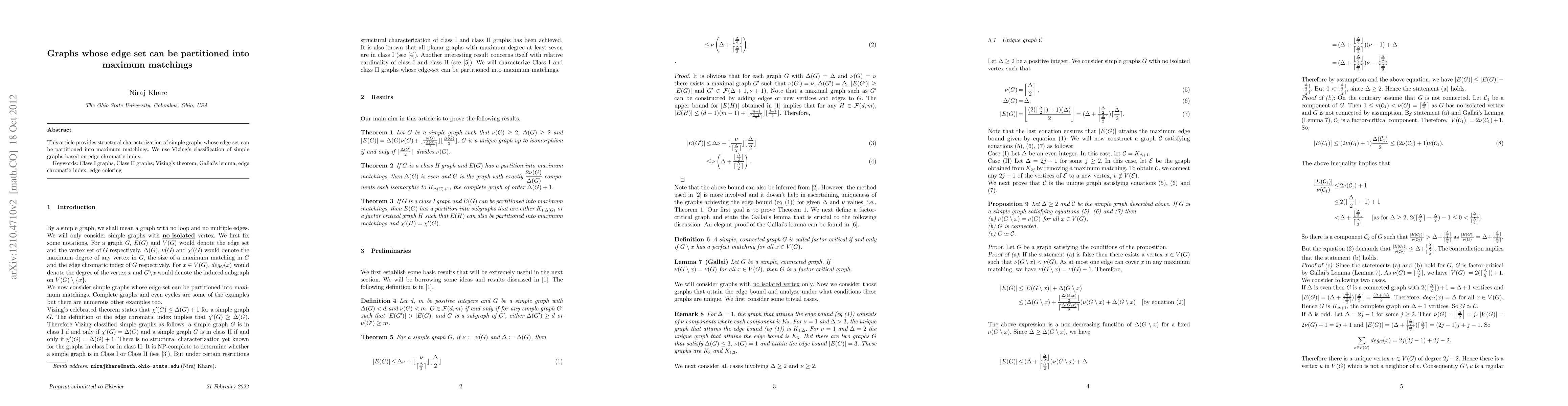 Researchers studied graphs that can be divided into maximum matchings using Vizing's classification method. They found a way to identify specific types of graphs with this property.