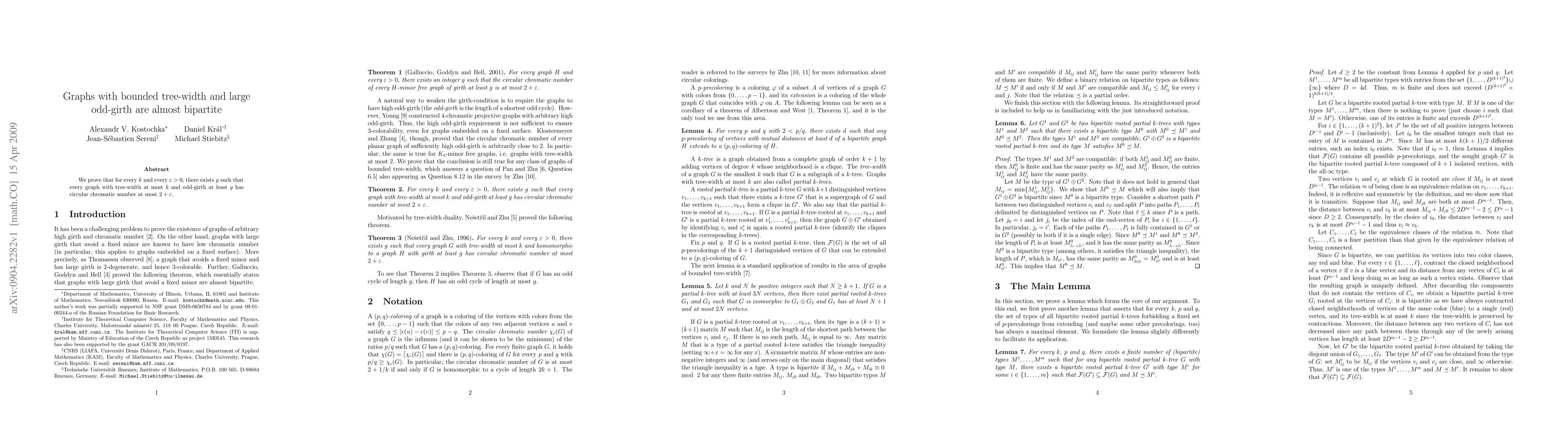 We prove that for every $k$ and every $\varepsilon>0$, there exists $g$ such that every graph with tree-width at most $k$ and odd-girth at least $g$ has circular chromatic number at most $2+\varepsilon$.