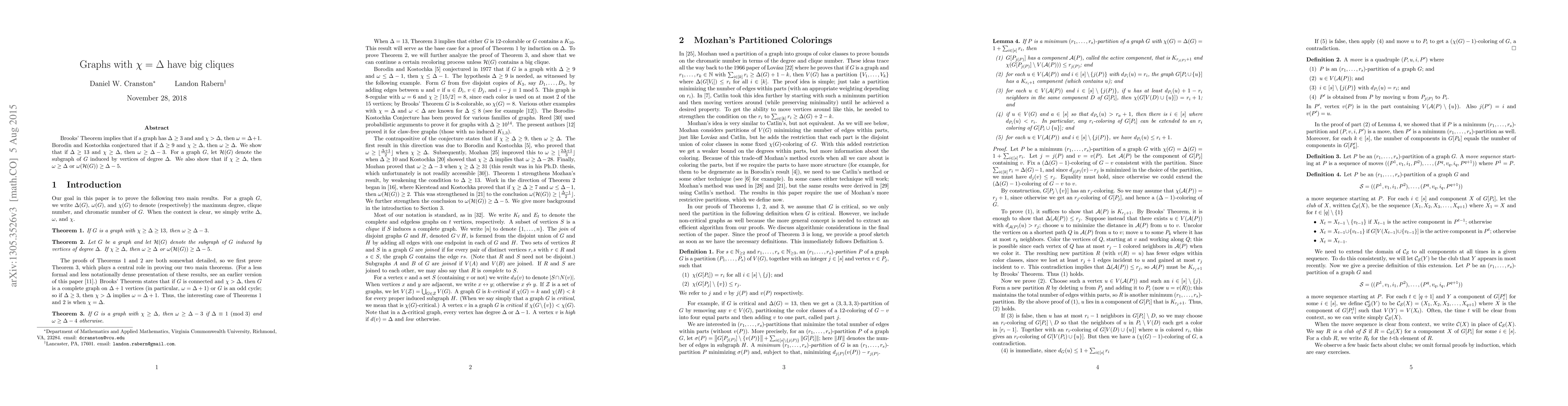 Research confirms that graphs with specific conditions on maximum degree ($ heta$) and clique size ($ au$) have chromatic numbers less than or equal to $ heta-1$.
