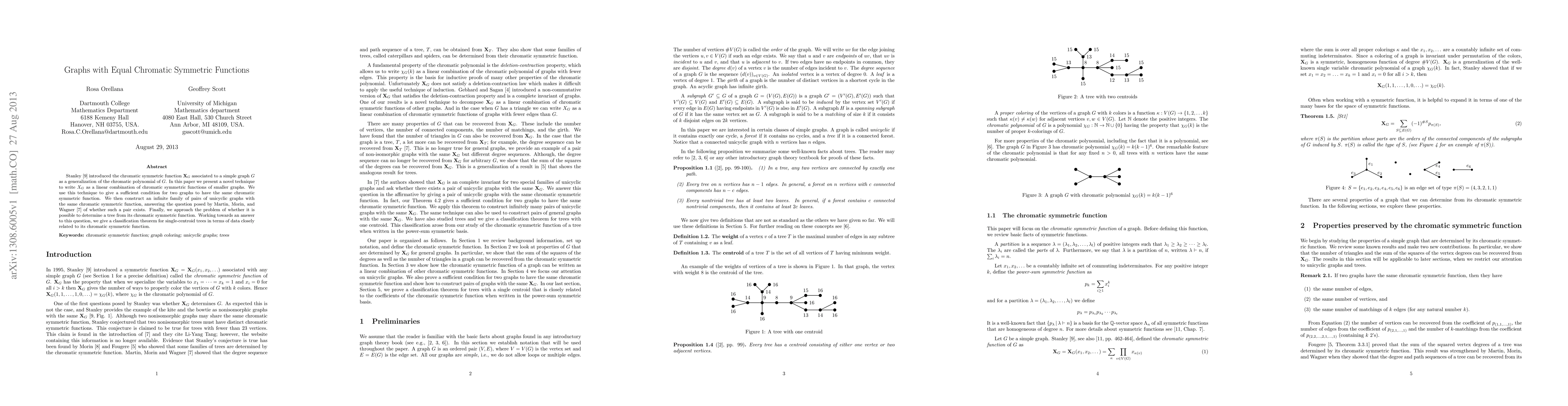 This paper presents a new method to express the chromatic symmetric function of a graph as a combination of smaller graphs, providing a sufficient condition for two graphs to share the same chromatic symmetric function. It constructs an infinite family of unicyclic graphs with identical chromatic symmetric functions and offers a classification of single-centroid trees based on their chromatic symmetric functions.
