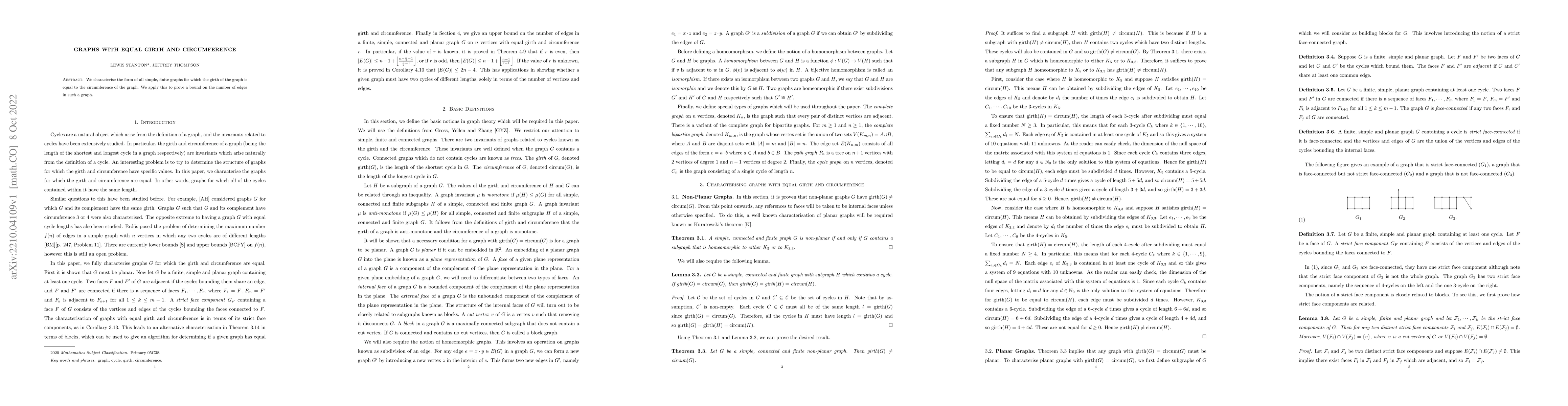 The paper characterizes simple, finite graphs where the girth equals the circumference and proves a bound on the number of edges for these graphs. This provides insights into the structural properties and limitations of such graph configurations.