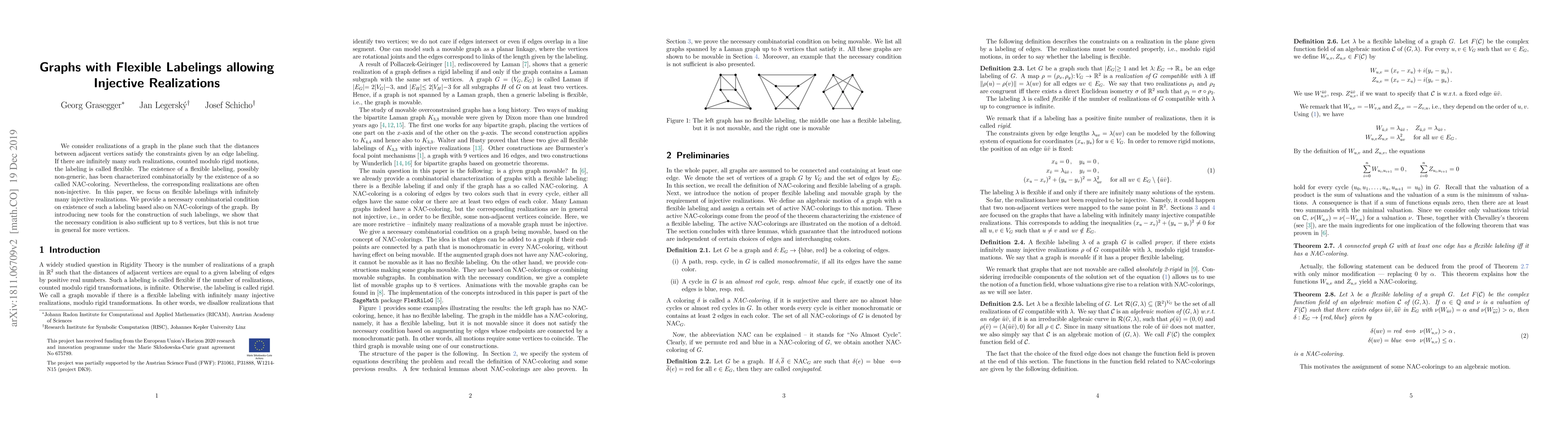 This paper investigates flexible labelings on graphs that allow for infinitely many injective realizations, introducing a necessary combinatorial condition based on NAC-coloring and providing sufficient conditions up to 8 vertices.