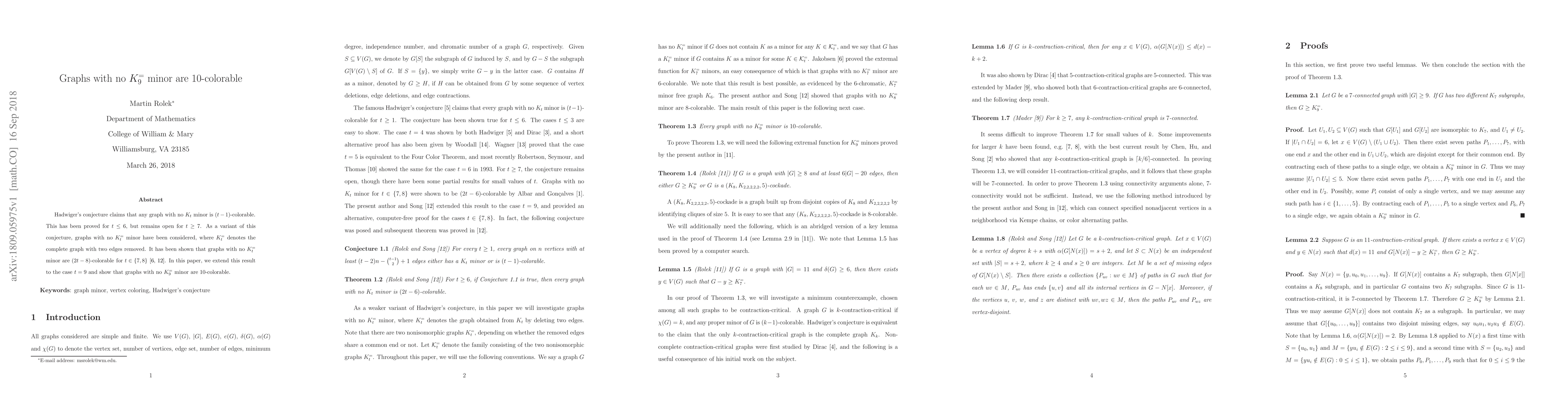This paper proves that graphs without a $K_9^=$ minor are 10-colorable, extending previous results that showed $(2t - 8)$-colorability for graphs without a $K_t^=$ minor for $t \in \{7, 8\}$. This contributes to the study of Hadwiger's conjecture variants.