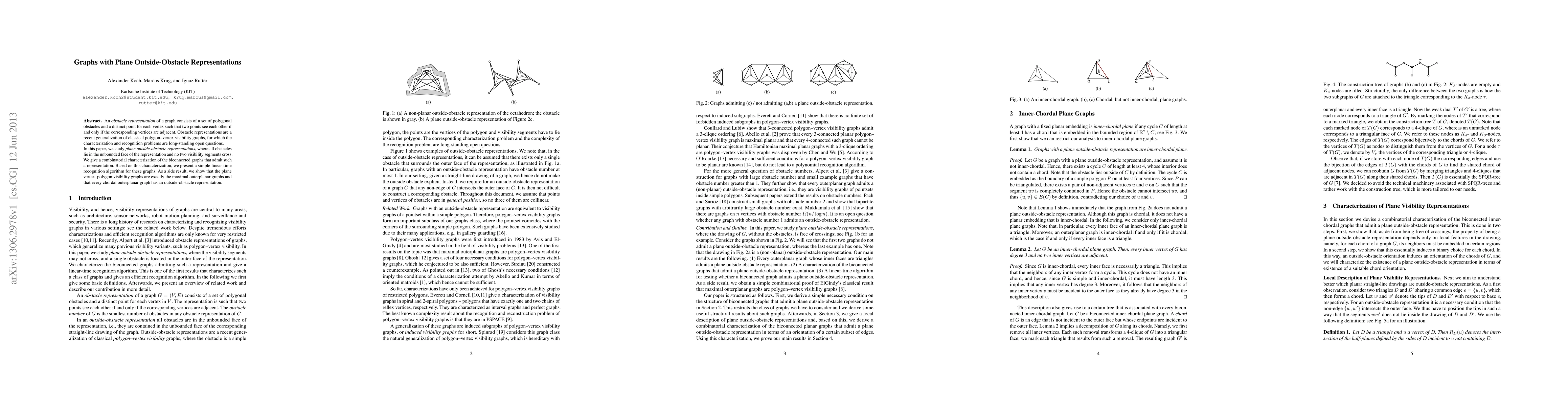 The paper presents a combinatorial characterization and a linear-time recognition algorithm for plane outside-obstacle representations of biconnected inner-chordal plane graphs.