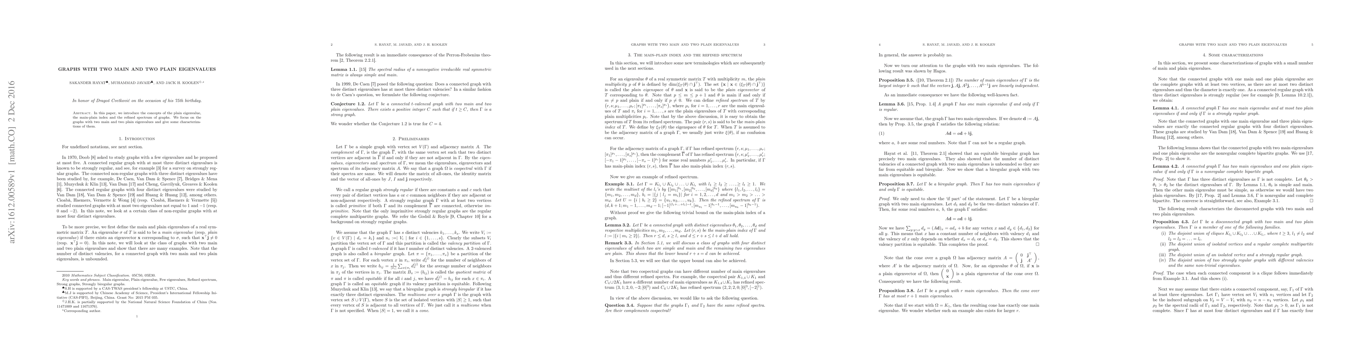 This paper introduces the concepts of plain eigenvalues, main-plain index, and refined spectrum for graphs, focusing on those with two main and two plain eigenvalues, providing characterizations for such graphs.
