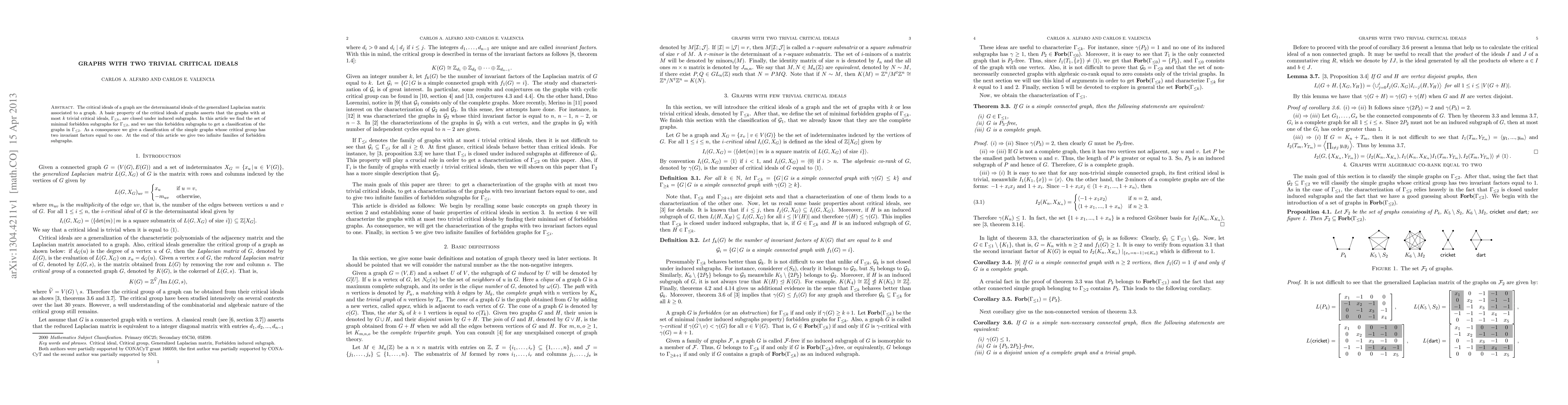 The critical ideals of a graph are the determinantal ideals of the generalized Laplacian matrix associated to a graph. A basic property of the critical ideals of graphs asserts that the graphs with at most k trivial critical ideals, $\Gamma_{\leq k}$, are closed under induced subgraphs. In this article we find the set of minimal forbidden subgraphs for $\Gamma_{\leq 2}$, and we use this forbidden subgraphs to get a classification of the graphs in $\Gamma_{\leq 2}$. As a consequence we give a classification of the simple graphs whose critical group has two invariant factors equal to one. At the end of this article we give two infinite families of forbidden subgraphs.