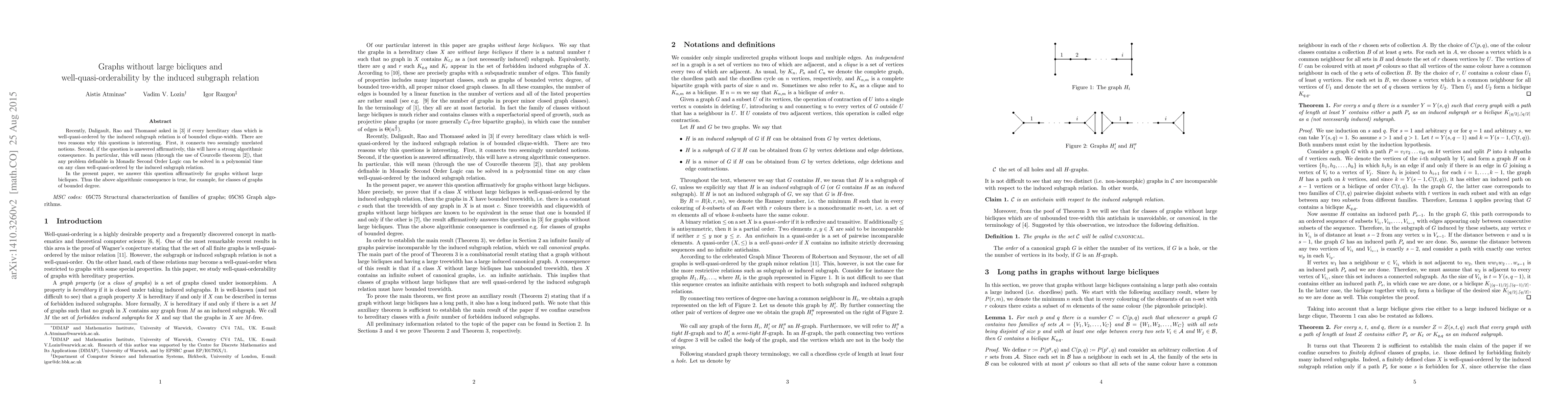 Recently, Daligault, Rao and Thomass\'e asked in [3] if every hereditary class which is well-quasi-ordered by the induced subgraph relation is of bounded clique-width. There are two reasons why this questions is interesting. First, it connects two seemingly unrelated notions. Second, if the question is answered affirmatively, this will have a strong algorithmic consequence. In particular, this will mean (through the use of Courcelle theorem [2]), that any problem definable in Monadic Second Order Logic can be solved in a polynomial time on any class well-quasi-ordered by the induced subgraph relation. In the present paper, we answer this question affirmatively for graphs without large bicliques. Thus the above algorithmic consequence is true, for example, for classes of graphs of bounded degree.