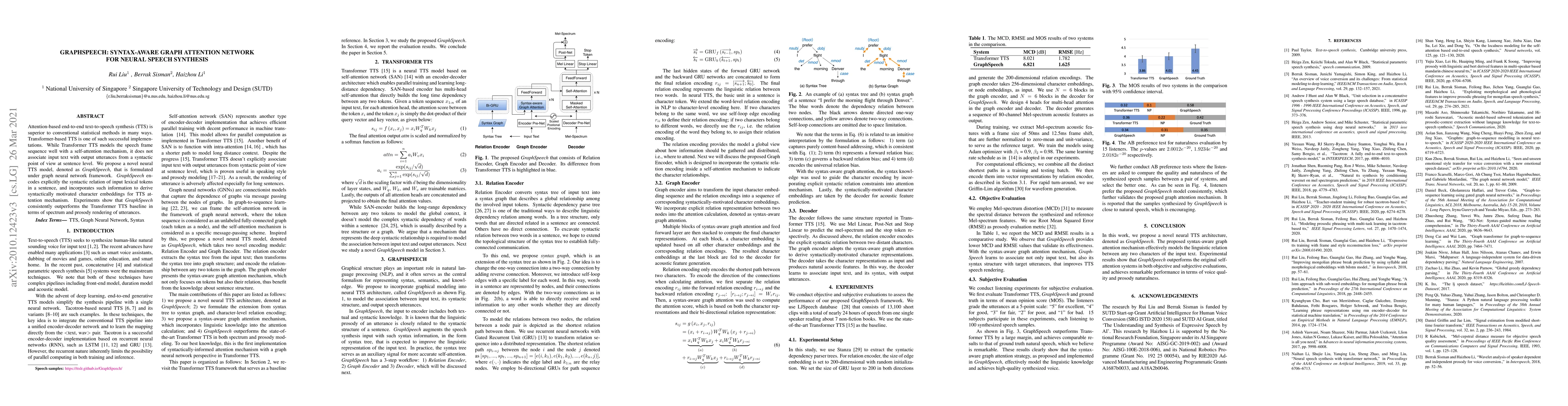 GraphSpeech is a novel syntax-aware graph attention network for neural text-to-speech synthesis that explicitly encodes syntactic relations of input text to improve TTS performance. It outperforms Transformer TTS baselines in spectrum and prosody rendering.