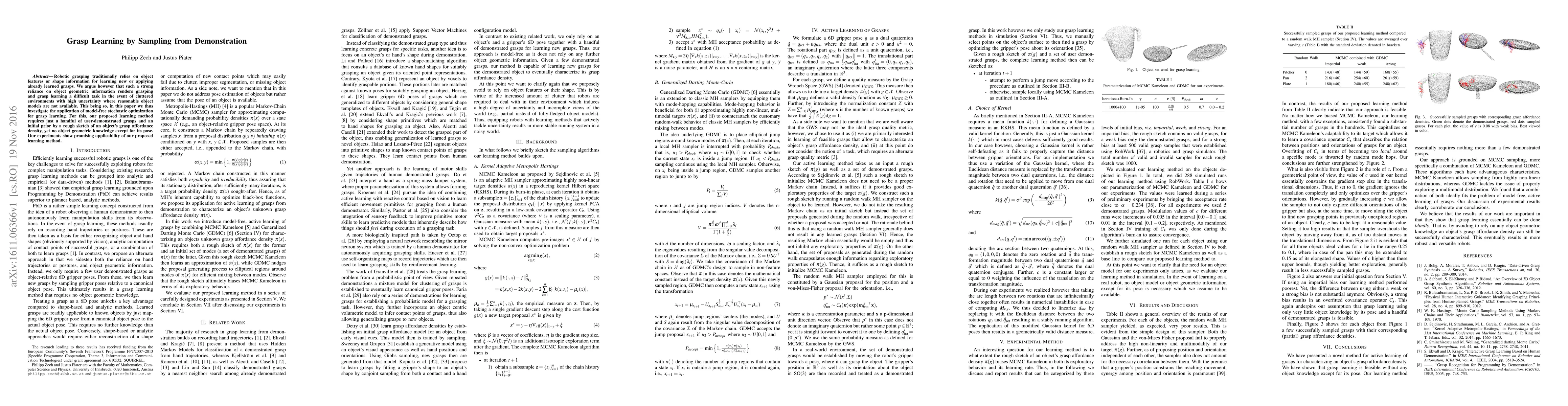 Robotic grasping traditionally relies on object features or shape information for learning new or applying already learned grasps. We argue however that such a strong reliance on object geometric information renders grasping and grasp learning a difficult task in the event of cluttered environments with high uncertainty where reasonable object models are not available. This being so, in this paper we thus investigate the application of model-free stochastic optimization for grasp learning. For this, our proposed learning method requires just a handful of user-demonstrated grasps and an initial prior by a rough sketch of an object's grasp affordance density, yet no object geometric knowledge except for its pose. Our experiments show promising applicability of our proposed learning method.