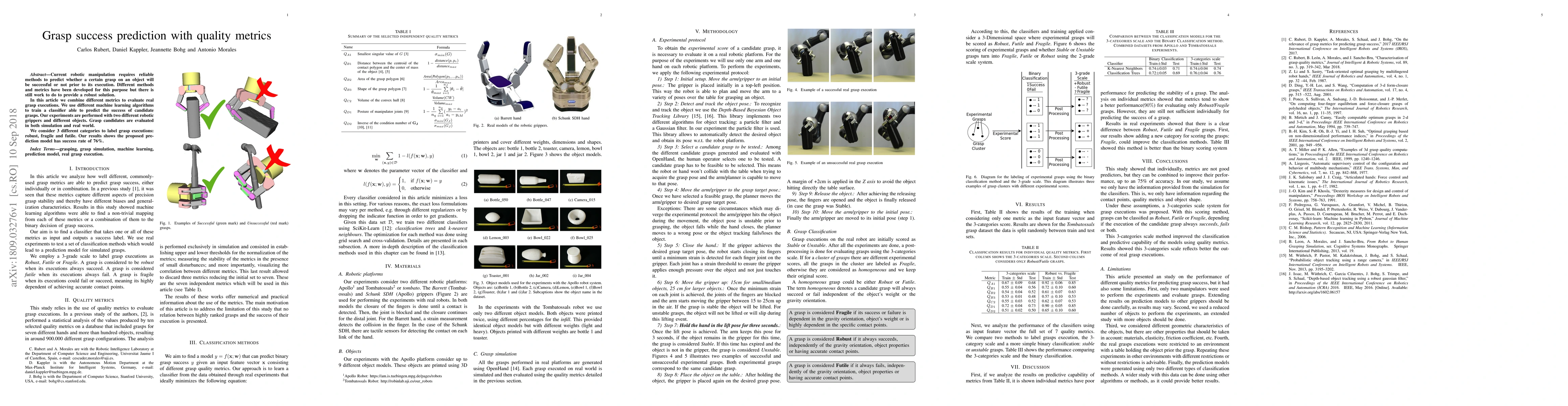 A new method combines different metrics to predict grasp success in robotics, achieving a 76% accuracy rate with real-world experimentation.
