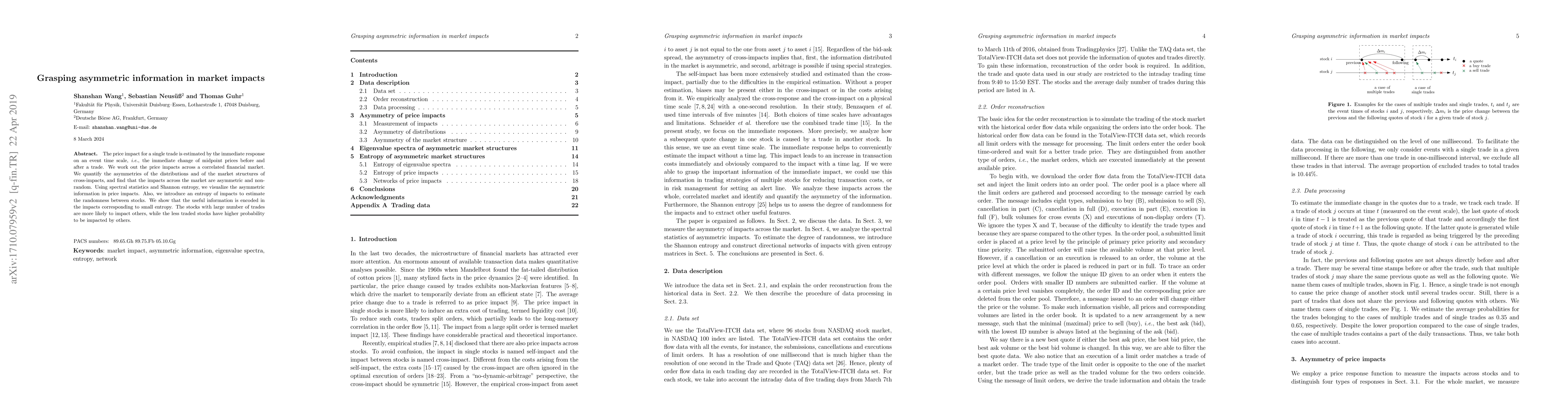 This paper estimates price impacts across correlated financial markets, revealing asymmetric and non-random cross-impacts. It uses spectral statistics and Shannon entropy to visualize asymmetric information, introducing an entropy of impacts to measure randomness between stocks and showing that small entropy corresponds to useful information.