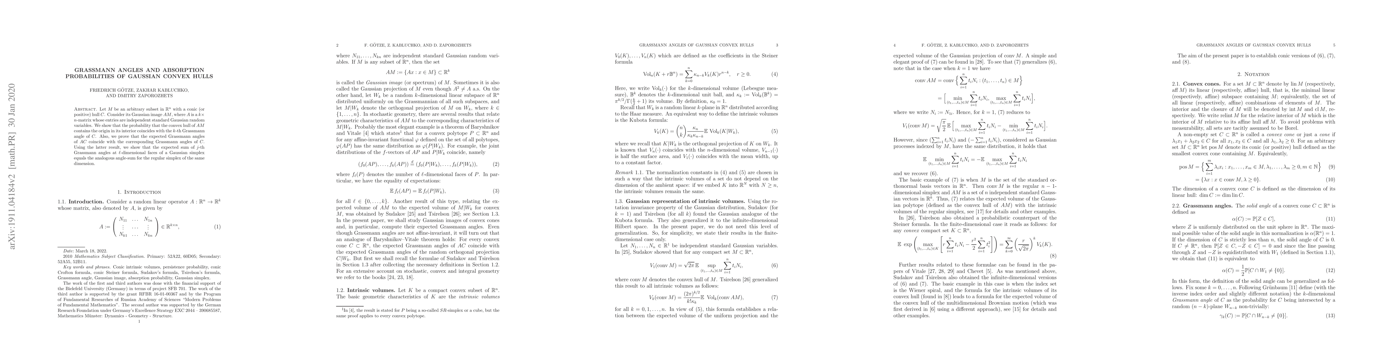 This research establishes a connection between Grassmann angles of a set's conic hull and the probability of the Gaussian image of that set enclosing the origin. It also demonstrates that expected Grassmann angles of a set's Gaussian image correspond to those of the original set. Furthermore, it shows that the expected sum of Grassmann angles at j-dimensional faces of a Gaussian simplex matches that of a regular simplex of the same dimension.