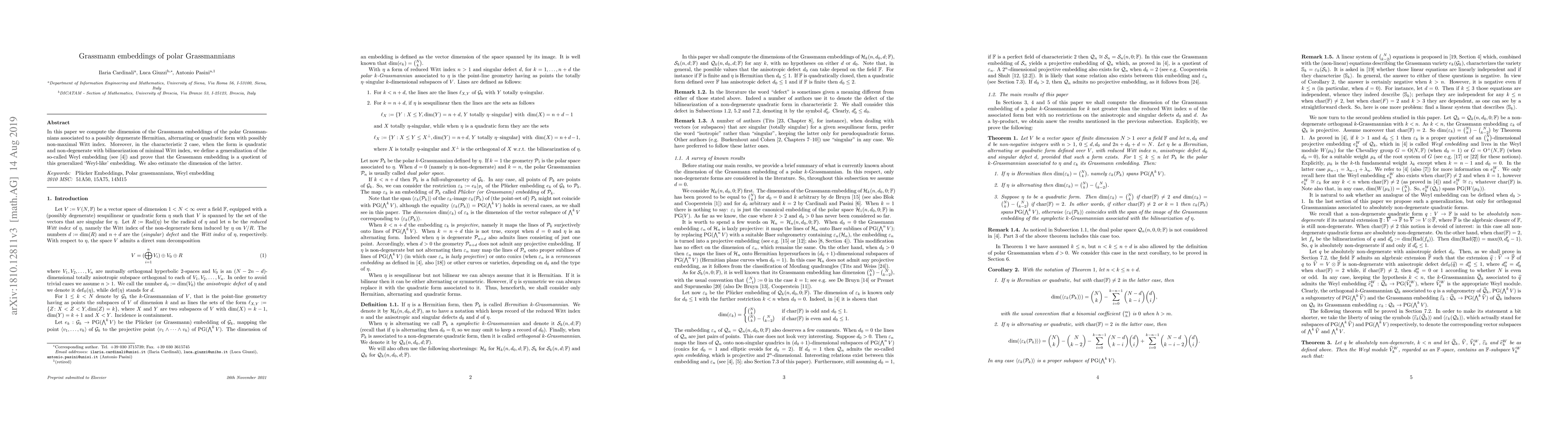 This paper computes the dimension of Grassmann embeddings of polar Grassmannians tied to various forms, including Hermitian, alternating, and quadratic, with a focus on non-maximal Witt indices. In characteristic 2, it introduces a generalized Weyl embedding for non-degenerate quadratic forms and proves the Grassmann embedding is a quotient of this new "Weyl-like" embedding, alongside estimating its dimension.