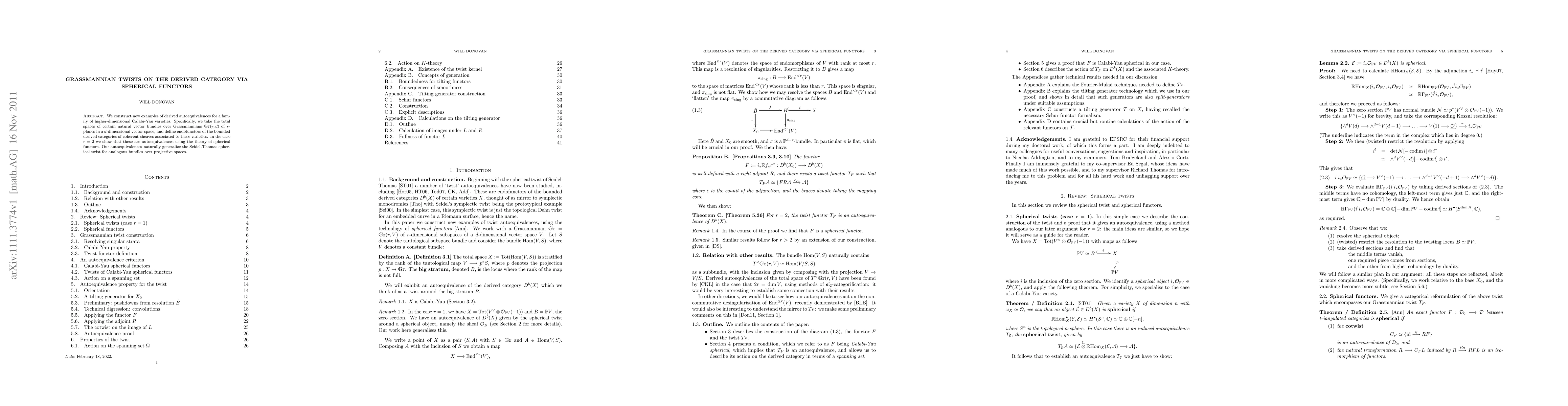 This paper constructs derived autoequivalences for higher-dimensional Calabi-Yau varieties, focusing on vector bundles over Grassmannians. For r=2, it utilizes spherical functors to demonstrate these as autoequivalences, generalizing the Seidel-Thomas twist for projective spaces.