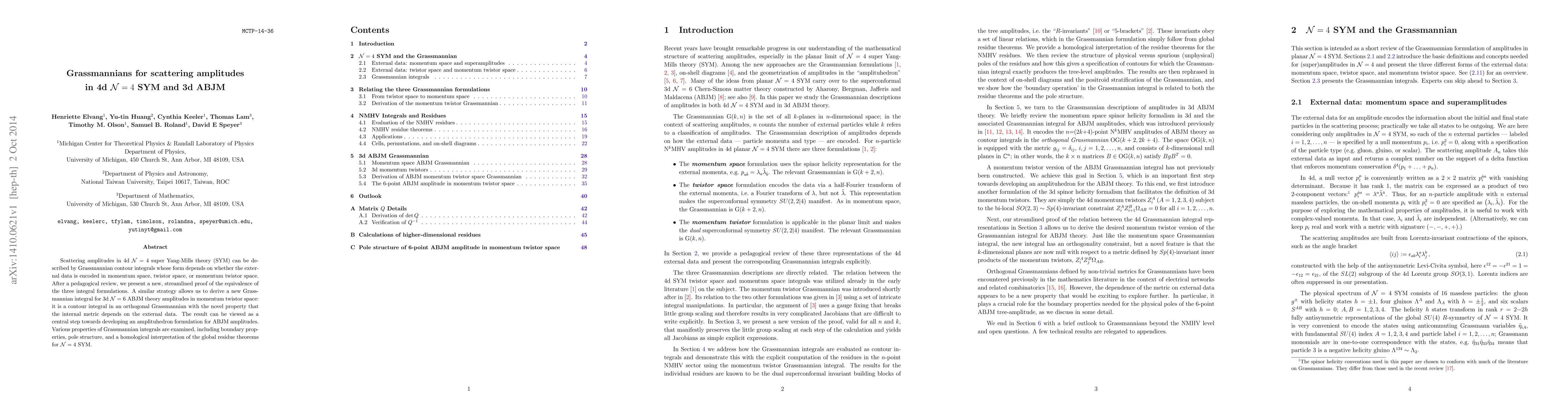 Scattering amplitudes in 4d $\mathcal{N}=4$ super Yang-Mills theory (SYM) can be described by Grassmannian contour integrals whose form depends on whether the external data is encoded in momentum space, twistor space, or momentum twistor space. After a pedagogical review, we present a new, streamlined proof of the equivalence of the three integral formulations. A similar strategy allows us to derive a new Grassmannian integral for 3d $\mathcal{N}=6$ ABJM theory amplitudes in momentum twistor space: it is a contour integral in an orthogonal Grassmannian with the novel property that the internal metric depends on the external data. The result can be viewed as a central step towards developing an amplituhedron formulation for ABJM amplitudes. Various properties of Grassmannian integrals are examined, including boundary properties, pole structure, and a homological interpretation of the global residue theorems for $\mathcal{N}=4$ SYM.