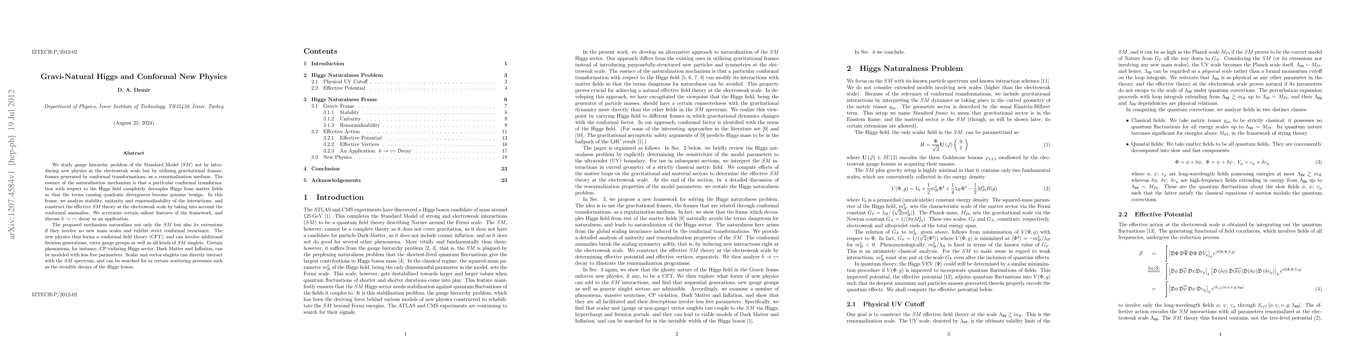 Researchers propose a new approach to naturalize the Standard Model's hierarchy problem using gravitational frames and conformal transformations, allowing for more precise modeling of certain phenomena like CP-violating Higgs sectors and Dark Matter.