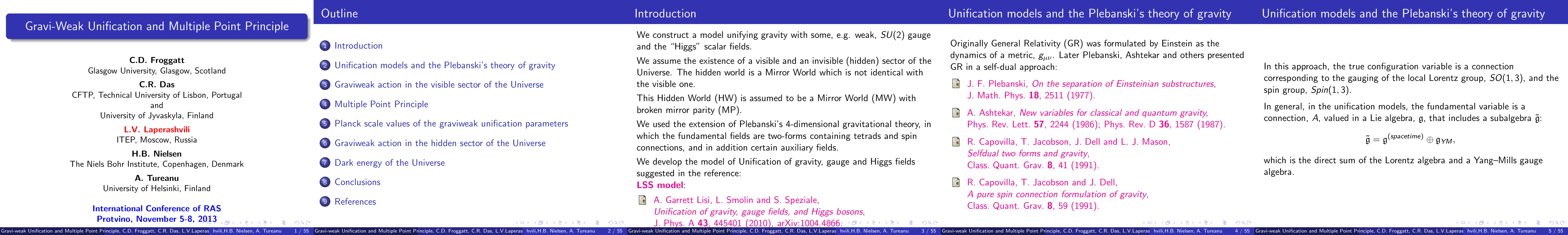 This paper proposes a model unifying gravity with weak $SU(2)$ gauge fields and scalar "Higgs" fields, distinguishing between visible and hidden sectors. It uses an extended Plebanski action to derive the actions for both sectors, determining physical constants via a unification parameter. The study finds that the Standard Model Higgs cannot be the unified field, suggesting another scalar field with a Planck scale value may better fit the unification criteria.