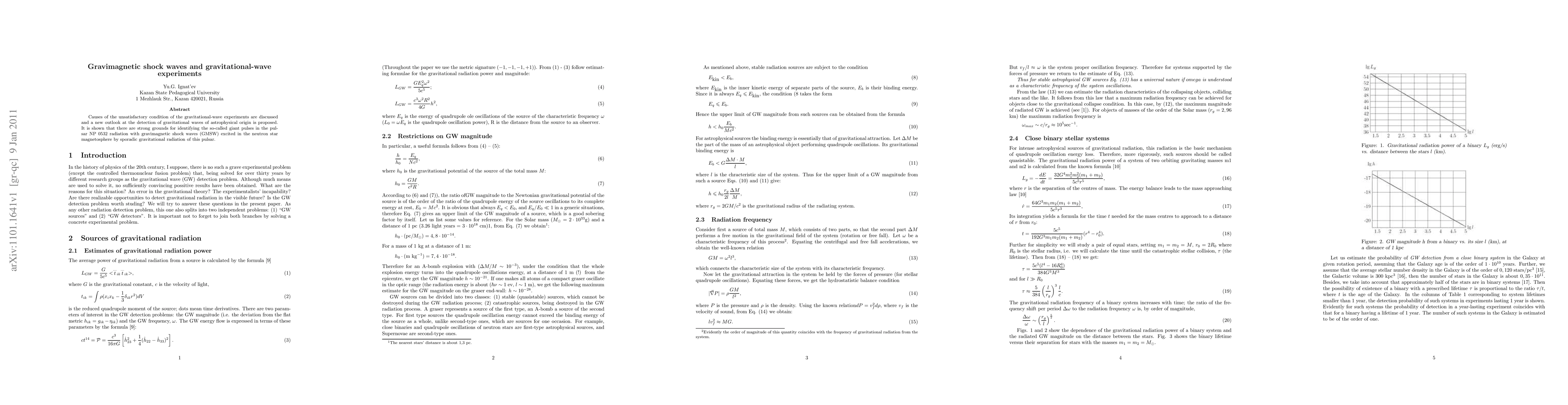 This paper discusses the causes behind the unsatisfactory results in gravitational-wave experiments and proposes a new approach to detect gravitational waves. It suggests that giant pulses in pulsar NP 0532 may be gravimagnetic shock waves generated by sporadic gravitational radiation.