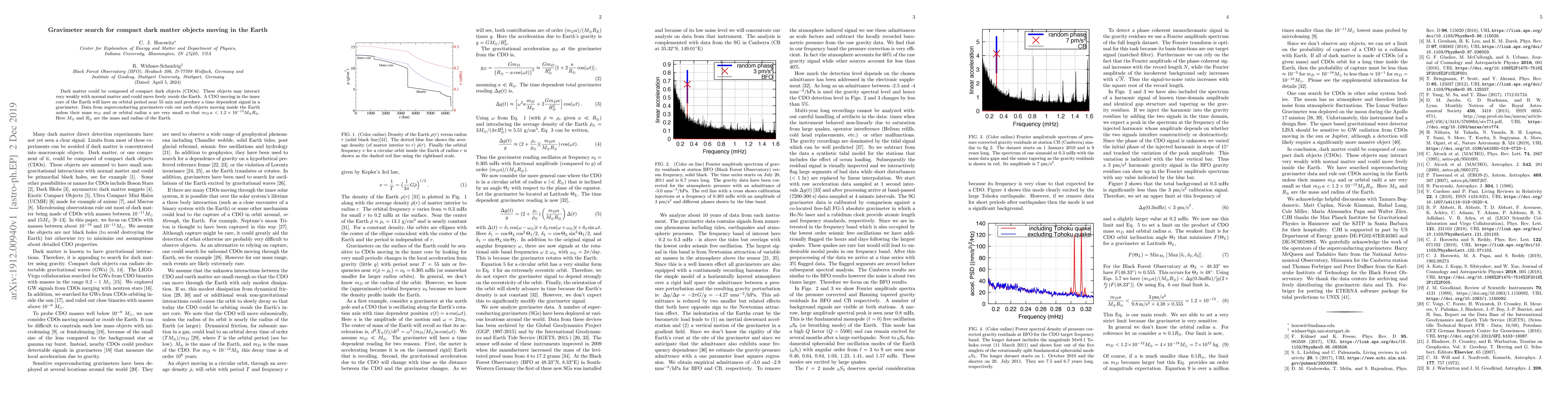Dark matter could be composed of compact dark objects (CDOs). These objects may interact very weakly with normal matter and could move freely {\it inside} the Earth. A CDO moving in the inner core of the Earth will have an orbital period near 55 min and produce a time dependent signal in a gravimeter. Data from superconducting gravimeters rule out such objects moving inside the Earth unless their mass $m_D$ and or orbital radius $a$ are very small so that $m_D\, a < 1.2\times 10^{-13}M_\oplus R_\oplus$. Here $M_\oplus$ and $R_\oplus$ are the mass and radius of the Earth.