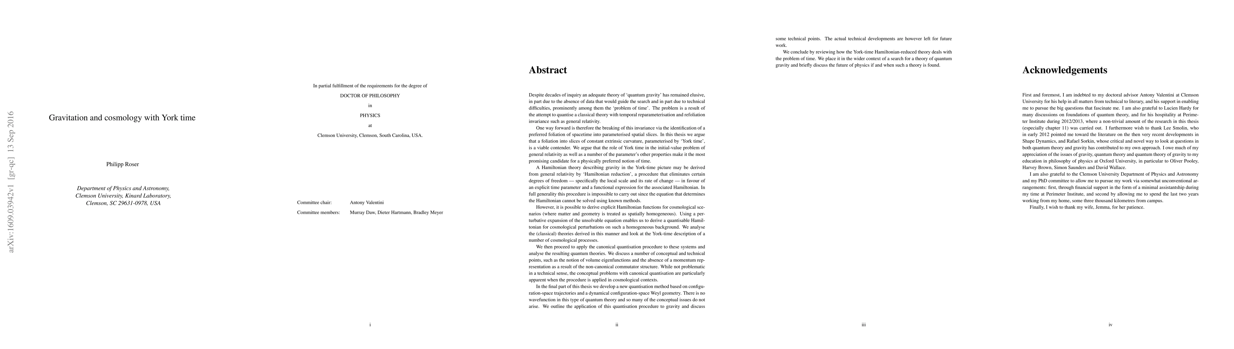 [Shortened abstract:] In this thesis we investigate a solution to the `problem of time' in canonical quantum gravity by splitting spacetime into surfaces of constant mean curvature parameterised by York time. We argue that there are reasons to consider York time a viable candidate for a physically meaningful notion of time. We investigate a number York-time Hamiltonian-reduced cosmological models and explore some technical aspects, such as the non-canonical Poisson structure. We develop York-time Hamiltonian-reduced cosmological perturbation theory by solving the Hamiltonian constraint perturbatively around a homogeneous background for the physical (non-vanishing) Hamiltonian that is the momentum conjugate to the York time parameter. We proceed to canonically quantise the cosmological models and the perturbation theory and discuss a number of conceptual and technical points, such as volume eigenfunctions and the absence of a momentum representation due to the non-standard commutator structure. We propose an alternative, wavefunction-free method of quantisation based on an ensemble of trajectories and a dynamical configuration-space geometry and discuss its application to gravity. We conclude by placing the York-time theories explored in this thesis in the wider context of a search for a satisfactory theory of quantum gravity.