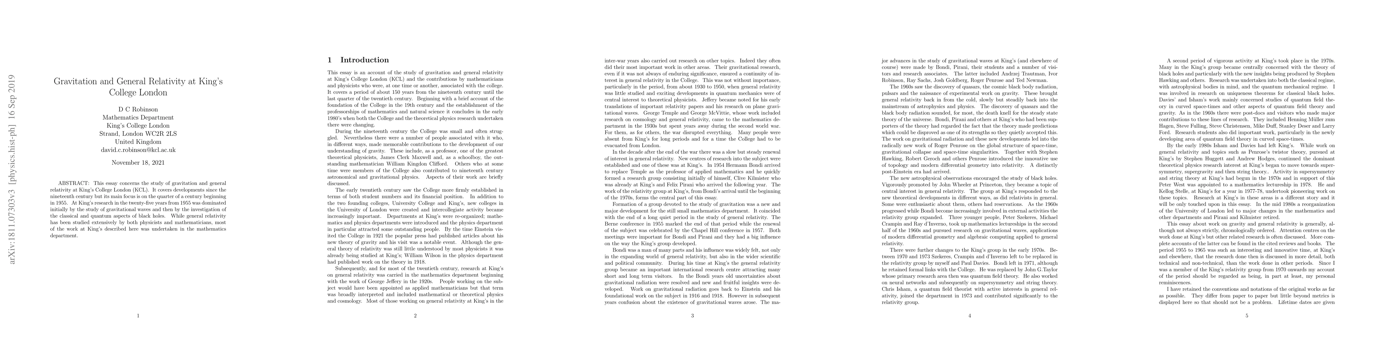 This essay concerns the study of gravitation and general relativity at King's College London (KCL). It covers developments since the nineteenth century but its main focus is on the quarter of a century beginning in 1955. At King's research in the twenty-five years from 1955 was dominated initially by the study of gravitational waves and then by the investigation of the classical and quantum aspects of black holes. While general relativity has been studied extensively by both physicists and mathematicians, most of the work at King's described here was undertaken in the mathematics department.