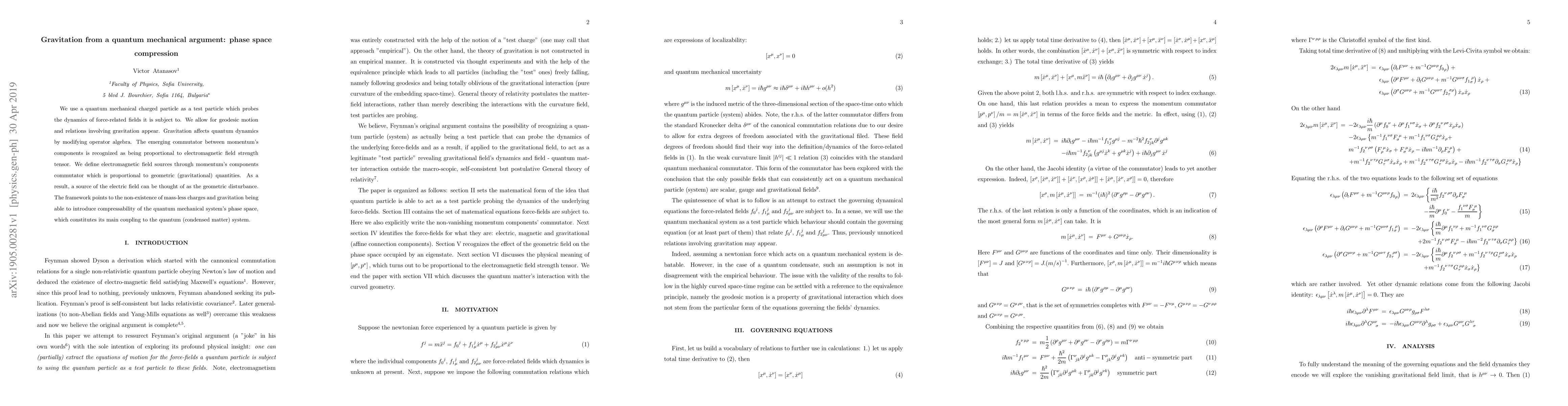 A quantum mechanical charged particle's motion reveals a connection between gravity and the compression of phase space, suggesting that gravity introduces a fundamental limit to the behavior of particles.