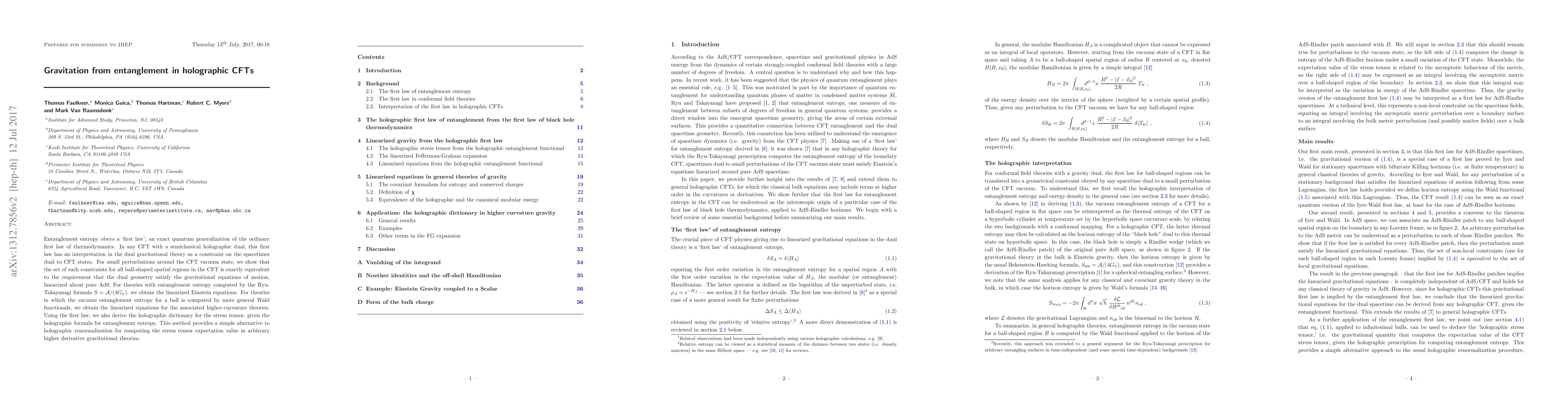 This paper demonstrates that the first law of entanglement entropy in holographic conformal field theories (CFTs) can be interpreted as constraints on the dual gravitational theory, leading to the derivation of linearized Einstein equations or higher-curvature theories, depending on the entanglement entropy formula used. It also provides a new method for computing the stress tensor expectation value in higher derivative gravitational theories.