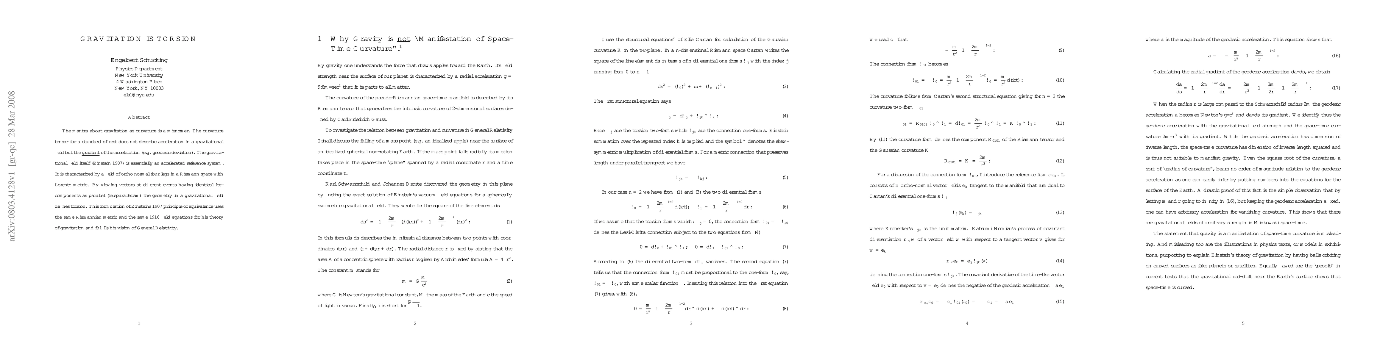 The mantra about gravitation as curvature is a misnomer. The curvature tensor for a standard of rest does not describe acceleration in a gravitational field but the \underline{gradient} of the acceleration (e.g. geodesic deviation). The gravitational field itself (Einstein 1907) is essentially an accelerated reference system. It is characterized by a field of orthonormal four-legs in a Riemann space with Lorentz metric. By viewing vectors at different events having identical leg-components as parallel (teleparallelism) the geometry in a gravitational field defines torsion. This formulation of Einstein's 1907 principle of equivalence uses the same Riemannian metric and the same 1916 field equations for his theory of gravitation and fulfills his vision of General Relativity.