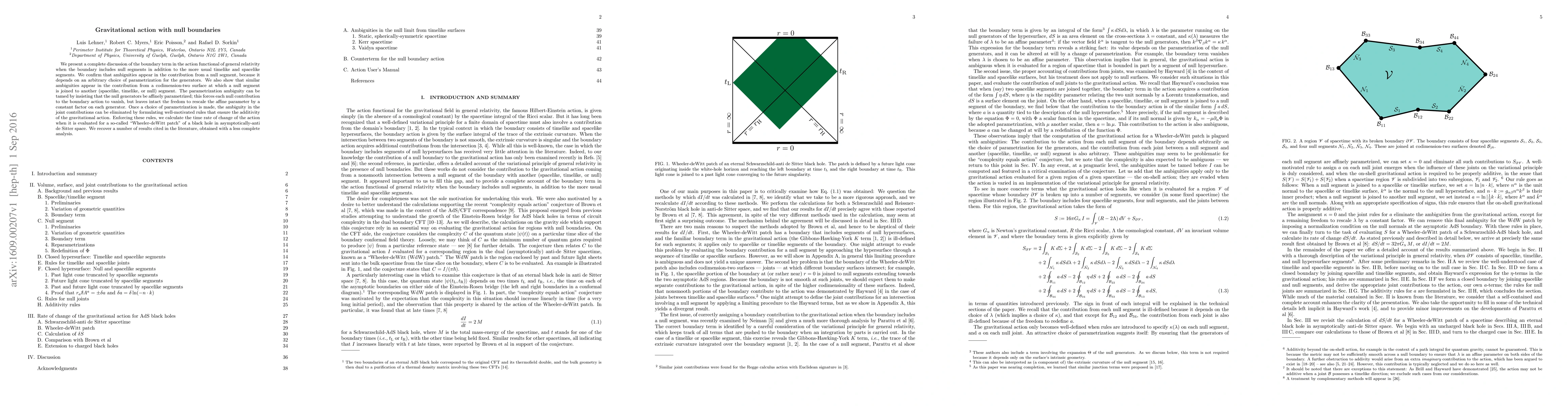 We present a complete discussion of the boundary term in the action functional of general relativity when the boundary includes null segments in addition to the more usual timelike and spacelike segments. We confirm that ambiguities appear in the contribution from a null segment, because it depends on an arbitrary choice of parametrization for the generators. We also show that similar ambiguities appear in the contribution from a codimension-two surface at which a null segment is joined to another (spacelike, timelike, or null) segment. The parametrization ambiguity can be tamed by insisting that the null generators be affinely parametrized; this forces each null contribution to the boundary action to vanish, but leaves intact the fredom to rescale the affine parameter by a constant factor on each generator. Once a choice of parametrization is made, the ambiguity in the joint contributions can be eliminated by formulating well-motivated rules that ensure the additivity of the gravitational action. Enforcing these rules, we calculate the time rate of change of the action when it is evaluated for a so-called "Wheeler-deWitt patch" of a black hole in asymptotically-anti de Sitter space. We recover a number of results cited in the literature, obtained with a less complete analysis.