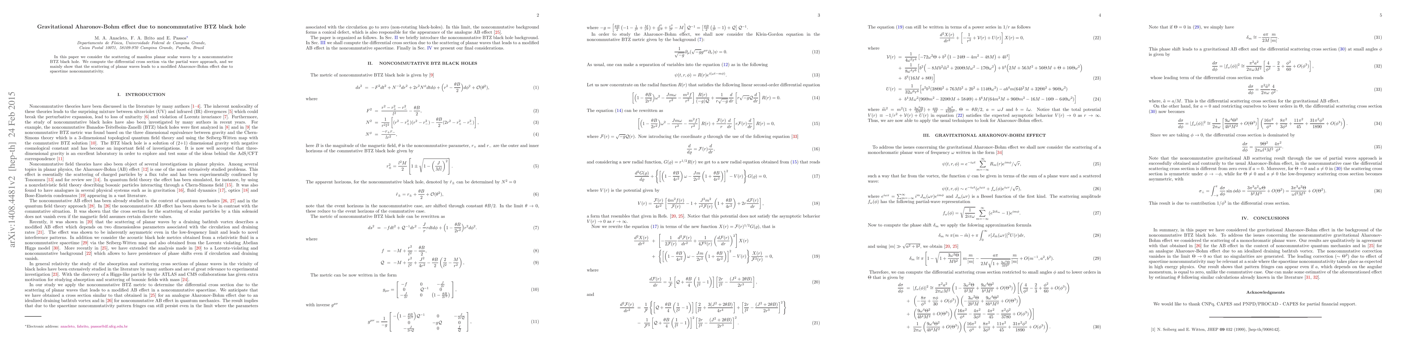 In this paper we consider the scattering of massless planar scalar waves by a noncommutative BTZ black hole. We compute the differential cross section via the partial wave approach, and we mainly show that the scattering of planar waves leads to a modified Aharonov-Bohm effect due to spacetime noncommutativity