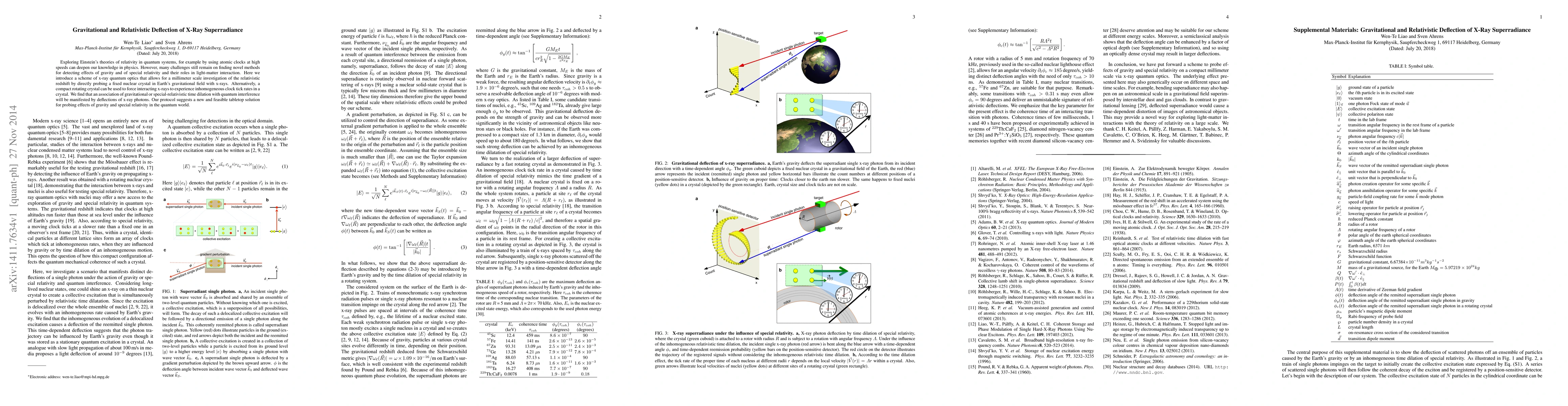 Exploring Einstein's theories of relativity in quantum systems, for example by using atomic clocks at high speeds can deepen our knowledge in physics. However, many challenges still remain on finding novel methods for detecting effects of gravity and of special relativity and their roles in light-matter interaction. Here we introduce a scheme of x-ray quantum optics that allows for a millimeter scale investigation of the relativistic redshift by directly probing a fixed nuclear crystal in Earth's gravitational field with x-rays. Alternatively, a compact rotating crystal can be used to force interacting x-rays to experience inhomogeneous clock tick rates in a crystal. We find that an association of gravitational or special-relativistic time dilation with quantum interference will be manifested by deflections of x-ray photons. Our protocol suggests a new and feasible tabletop solution for probing effects of gravity and special relativity in the quantum world.