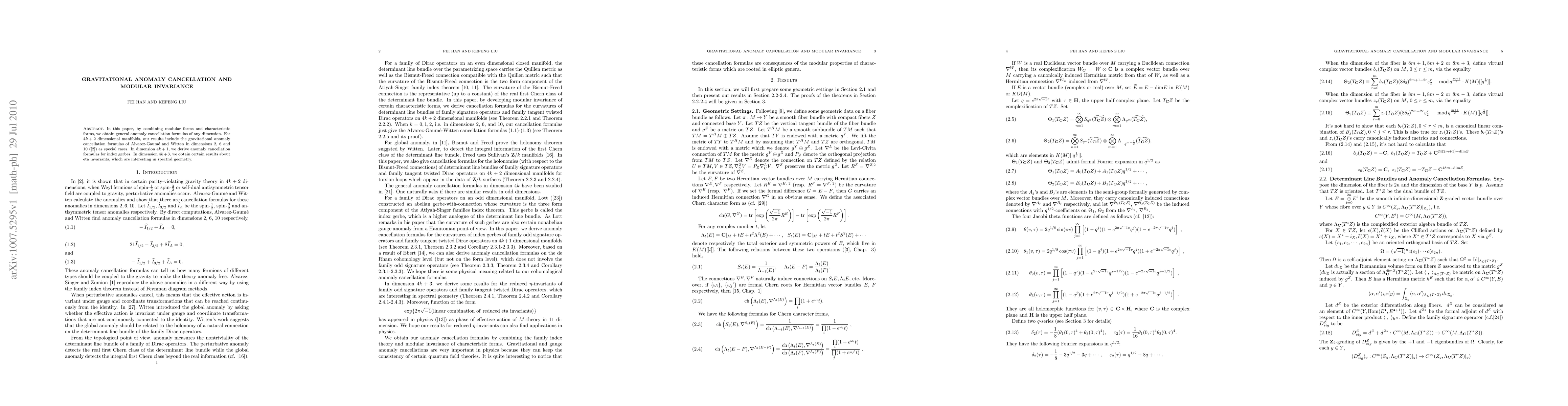 This paper combines modular forms and characteristic forms to derive general formulas for gravitational anomaly cancellation across any dimension, including special cases of Alvarez-Gaumé and Witten's results in dimensions 2, 6, and 10, and introduces new results for index gerbes and eta invariants in dimensions 4k+1 and 4k+3 respectively.