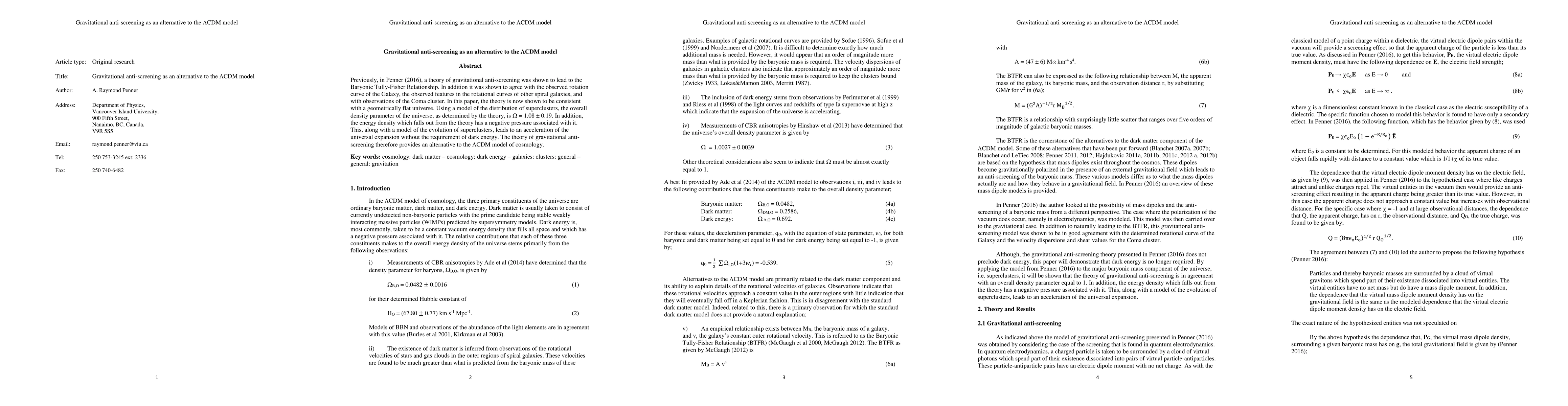This paper proposes gravitational anti-screening as an alternative to the LCDM model, demonstrating consistency with the Baryonic Tully-Fisher Relationship, galactic rotation curves, and cluster observations. It shows a flat universe density parameter of 1.08±0.19 and an accelerating expansion driven by negative pressure without dark energy.