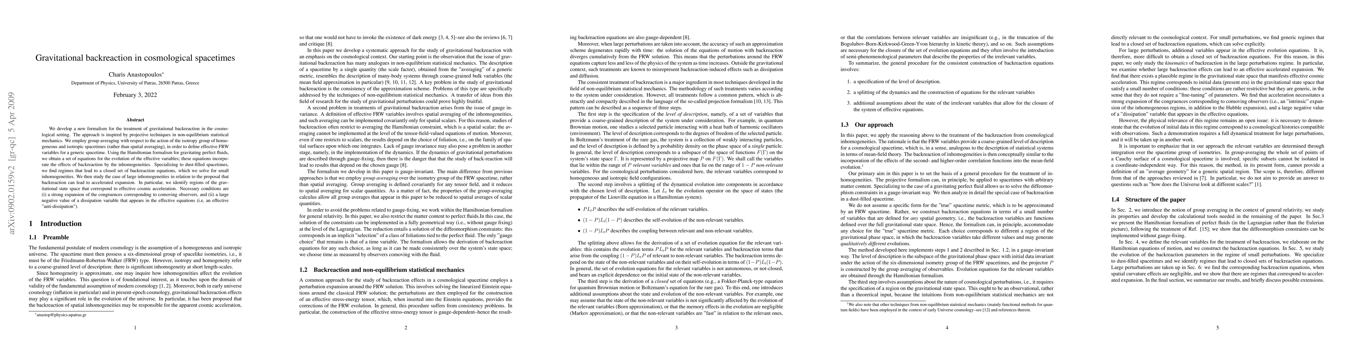 We develop a new formalism for the treatment of gravitational backreaction in the cosmological setting. The approach is inspired by projective techniques in non-equilibrium statistical mechanics. We employ group-averaging with respect to the action of the isotropy group of homogeneous and isotropic spacetimes (rather than spatial averaging), in order to define effective FRW variables for a generic spacetime. Using the Hamiltonian formalism for gravitating perfect fluids, we obtain a set of equations for the evolution of the effective variables; these equations incorporate the effects of backreaction by the inhomogeneities. Specializing to dust-filled spacetimes, we find regimes that lead to a closed set of backreaction equations, which we solve for small inhomogeneities. We then study the case of large inhomogeneities in relation to the proposal that backreaction can lead to accelerated expansion. In particular, we identify regions of the gravitational state space that correspond to effective cosmic acceleration. Necessary conditions are (i) a strong expansion of the congruences corresponding to comoving observers, and (ii) a large negative value of a dissipation variable that appears in the effective equations (i.e, an effective "anti-dissipation").