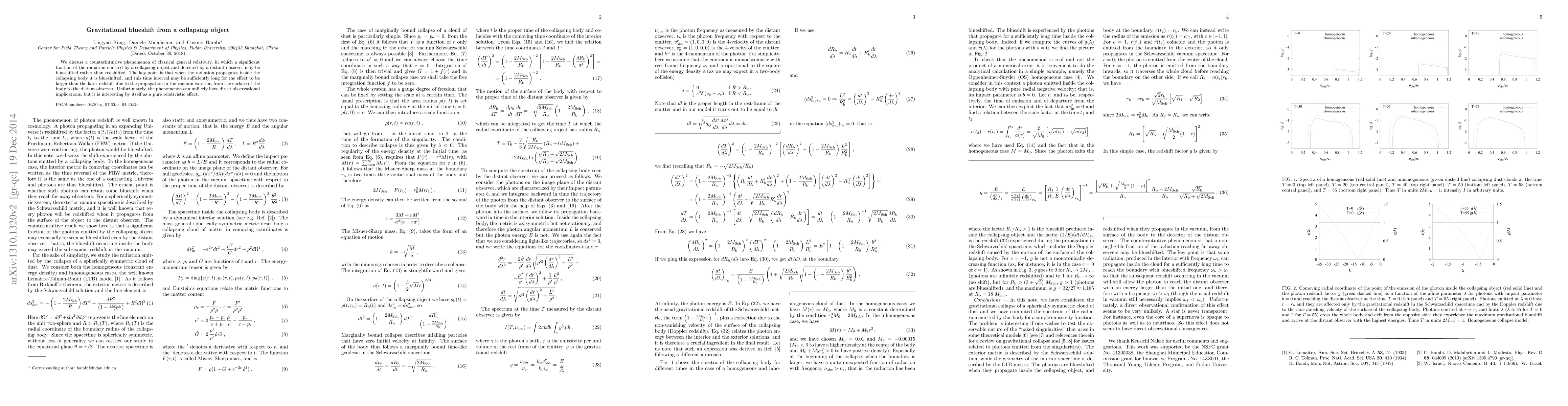 Researchers found a phenomenon in classical general relativity where radiation from a collapsing object can appear blueshifted to an observer, despite being emitted from the collapsed object itself. This effect may be significant enough to outweigh later redshifts due to vacuum propagation.