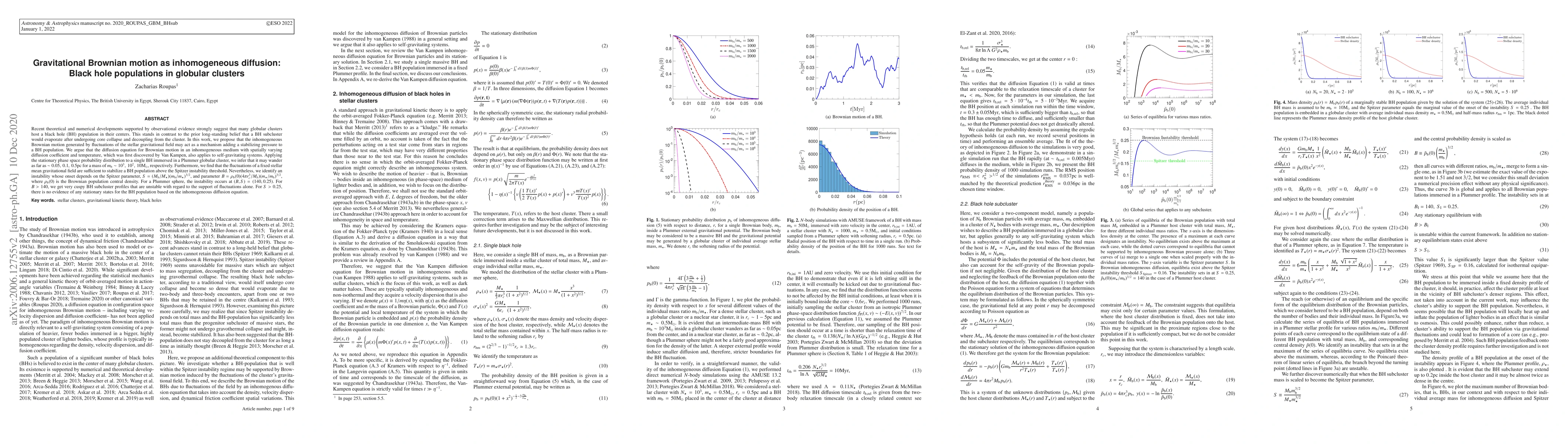 Recent theoretical and numerical developments supported by observational evidence strongly suggest that many globular clusters host a black hole (BH) population in their centers. This stands in contrast to the prior long-standing belief that a BH subcluster would evaporate after undergoing core collapse and decoupling from the cluster. In this work, we propose that the inhomogeneous Brownian motion generated by fluctuations of the stellar gravitational field may act as a mechanism adding a stabilizing pressure to a BH population. We argue that the diffusion equation for Brownian motion in an inhomogeneous medium with spatially varying diffusion coefficient and temperature, which was first discovered by Van Kampen, also applies to self-gravitating systems. Applying the stationary phase space probability distribution to a single BH immersed in a Plummer globular cluster, we infer that it may wander as far as $\sim 0.05,\,0.1,\,0.5{\rm pc}$ for a mass of $m_{\rm b} \sim 10^3,\,10^2,\,10{\rm M}_\odot$, respectively. Furthermore, we find that the fluctuations of a fixed stellar mean gravitational field are sufficient to stabilize a BH population above the Spitzer instability threshold. Nevertheless, we identify an instability whose onset depends on the Spitzer parameter, $S = (M_{\rm b}/M_\star) (m_{\rm b}/m_\star)^{3/2} ,$ and parameter $B = \rho_{\rm b}(0) (4\pi r_c^3/M_b)(m_\star/m_{\rm b})^{3/2} $, where $\rho_{\rm b}(0)$ is the Brownian population central density. For a Plummer sphere, the instability occurs at $(B,S) = (140,0.25)$. For $B > 140,$ we get very cuspy BH subcluster profiles that are unstable with regard to the support of fluctuations alone. For $S > 0.25,$ there is no evidence of any stationary states for the BH population based on the inhomogeneous diffusion equation.